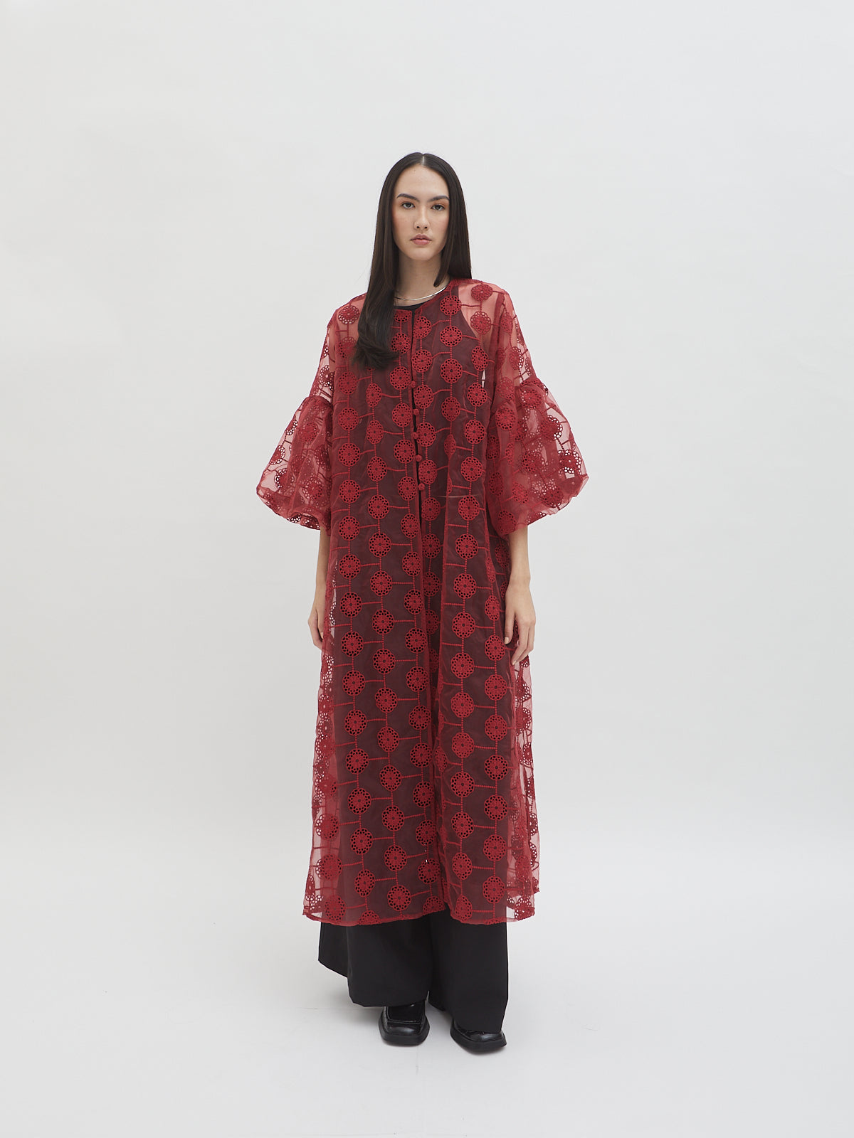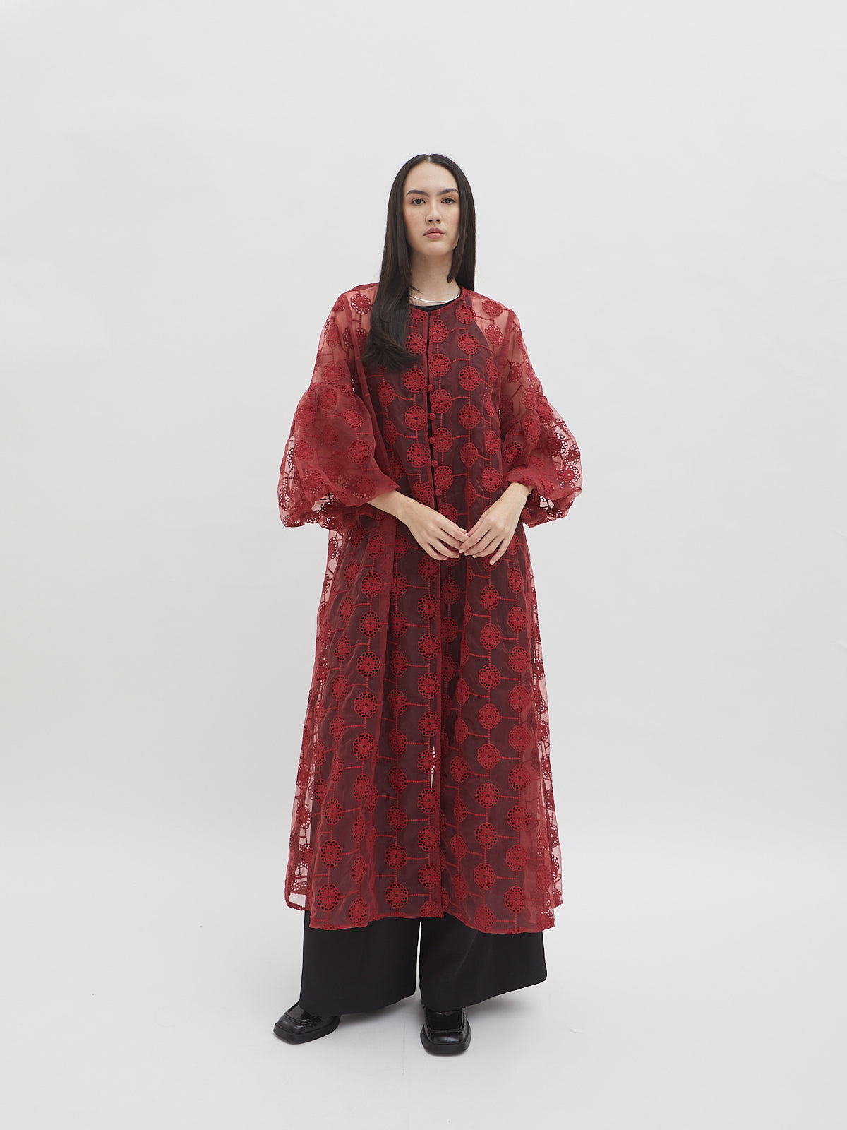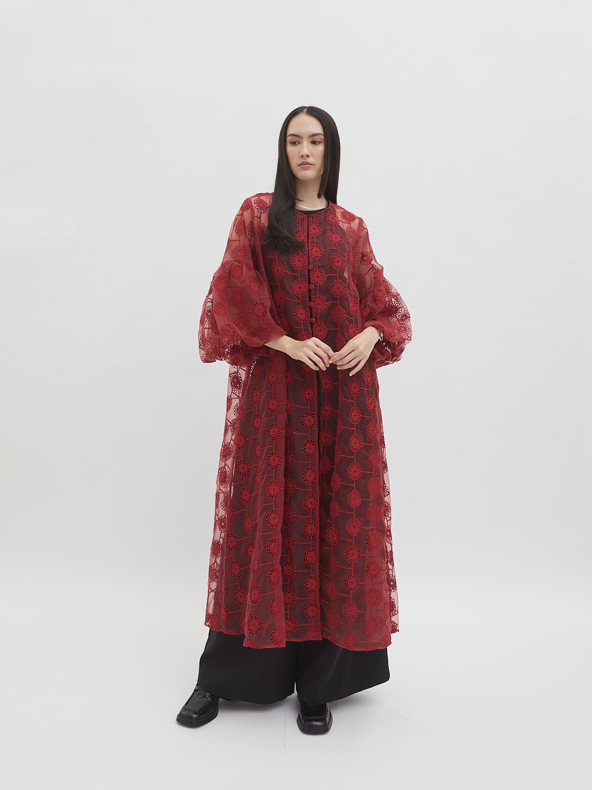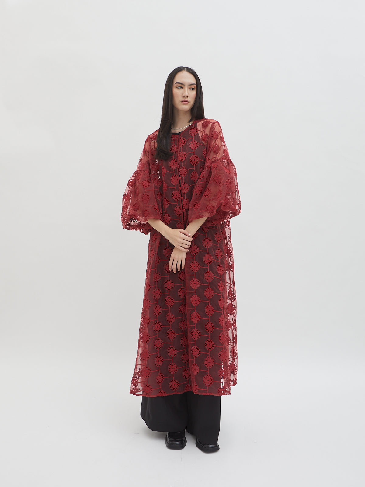 Alma Long Outer hadir dengan desain elegan yang memadukan bahan embroidery berkualitas dengan motif unik. Potongan longgar dan ringan menjadikannya pilihan sempurna untuk layering, memberikan tampilan yang anggun dan nyaman sepanjang hari.