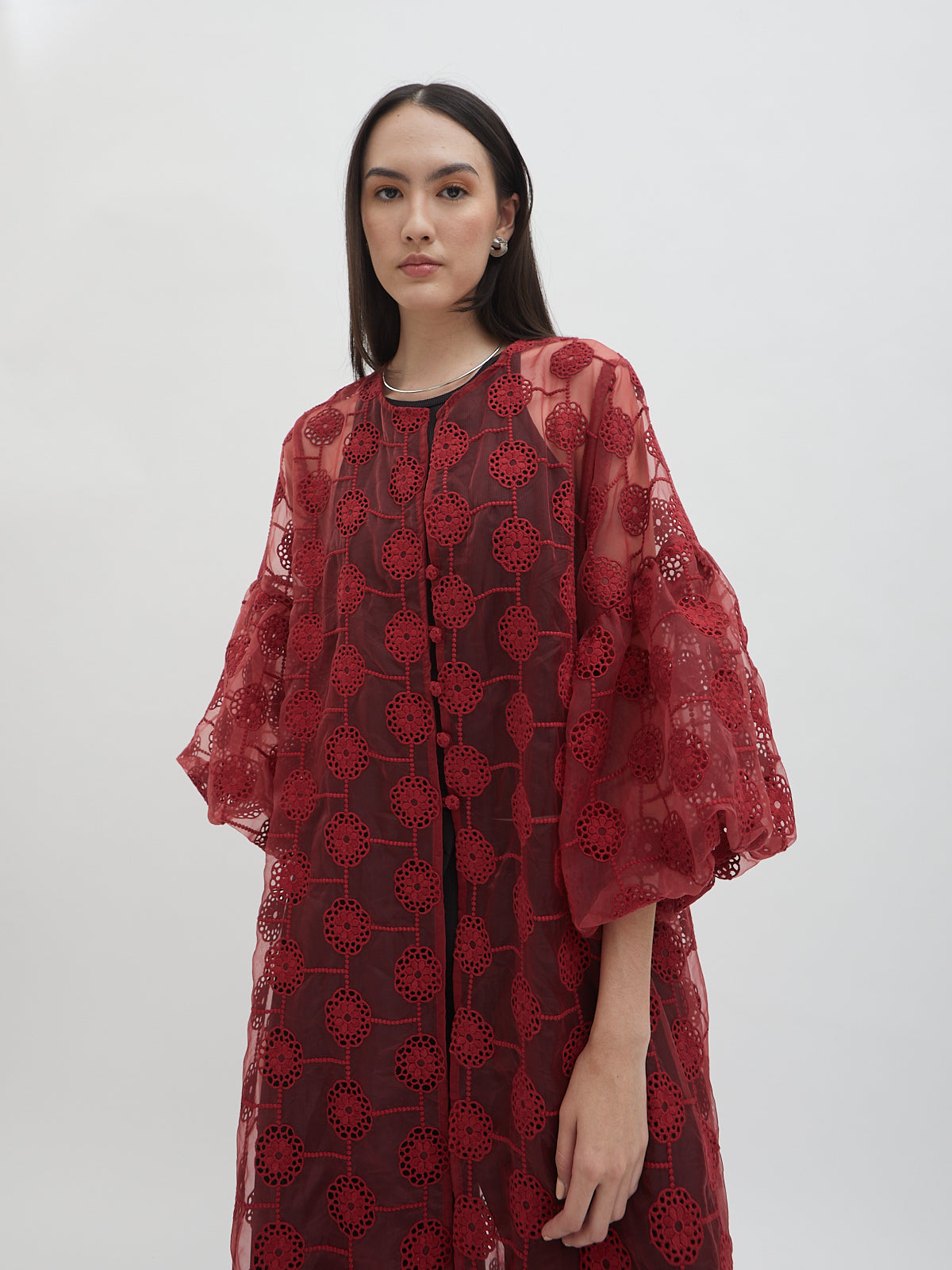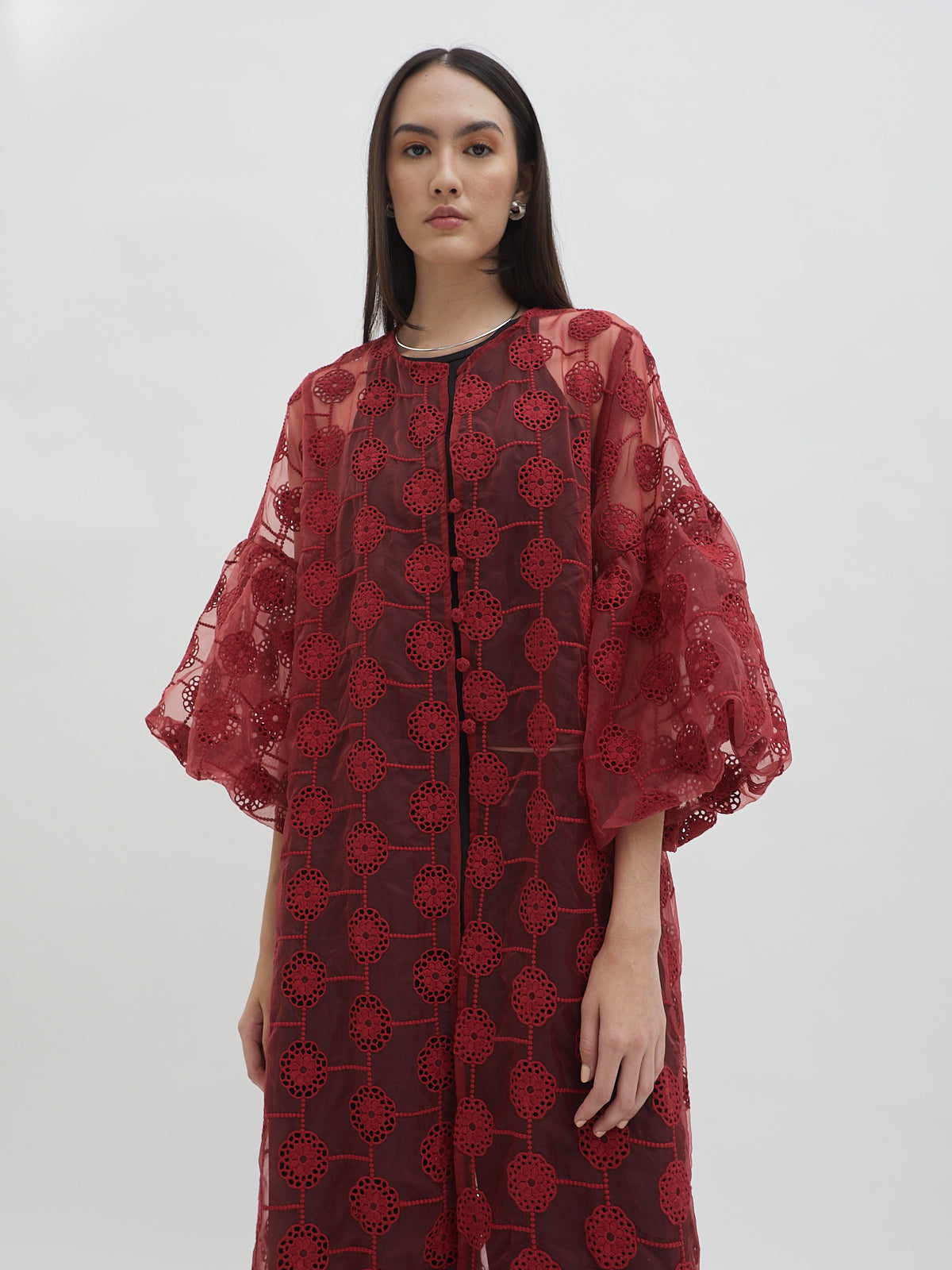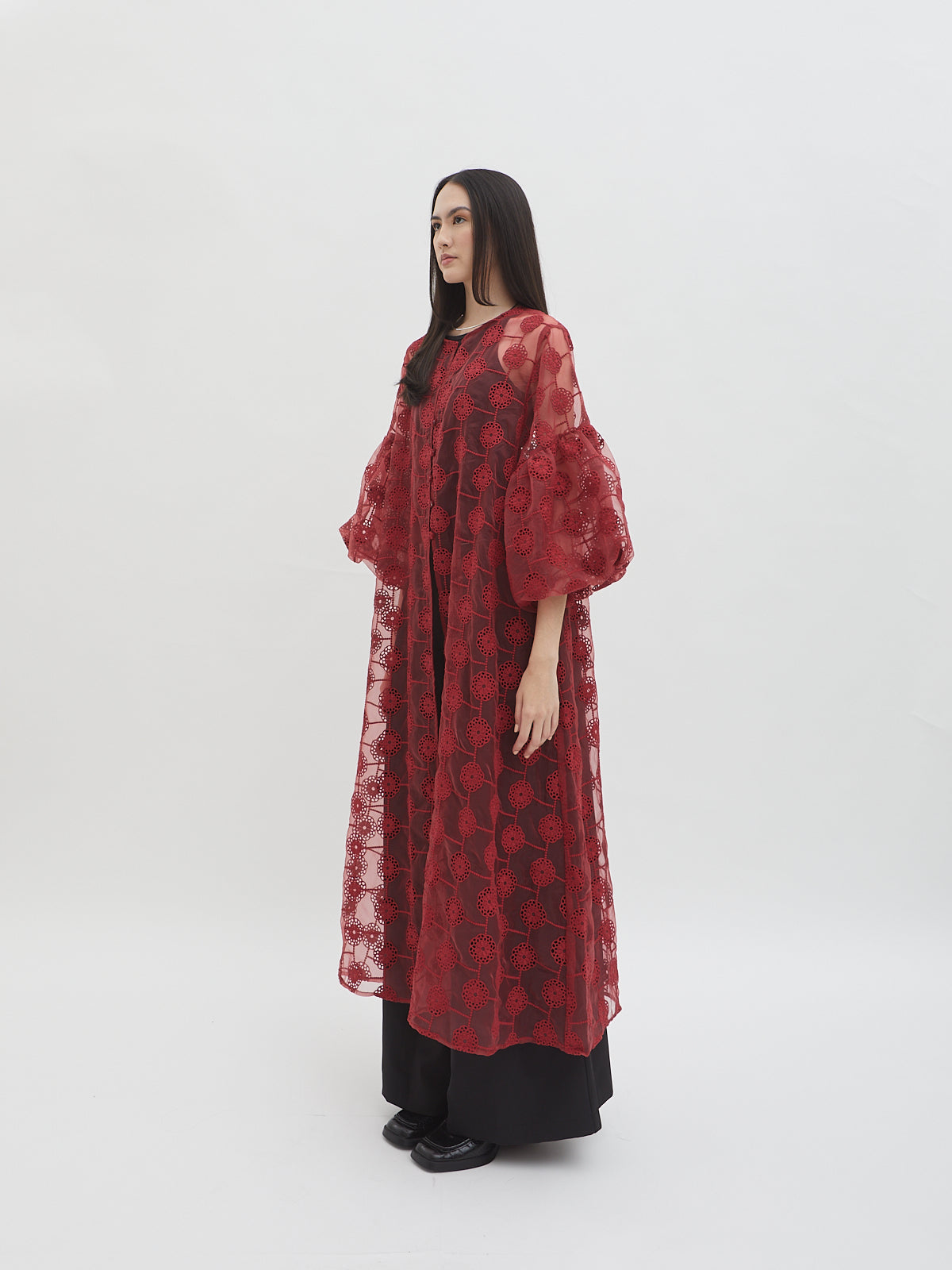 Alma Long Outer hadir dengan desain elegan yang memadukan bahan embroidery berkualitas dengan motif unik. Potongan longgar dan ringan menjadikannya pilihan sempurna untuk layering, memberikan tampilan yang anggun dan nyaman sepanjang hari.