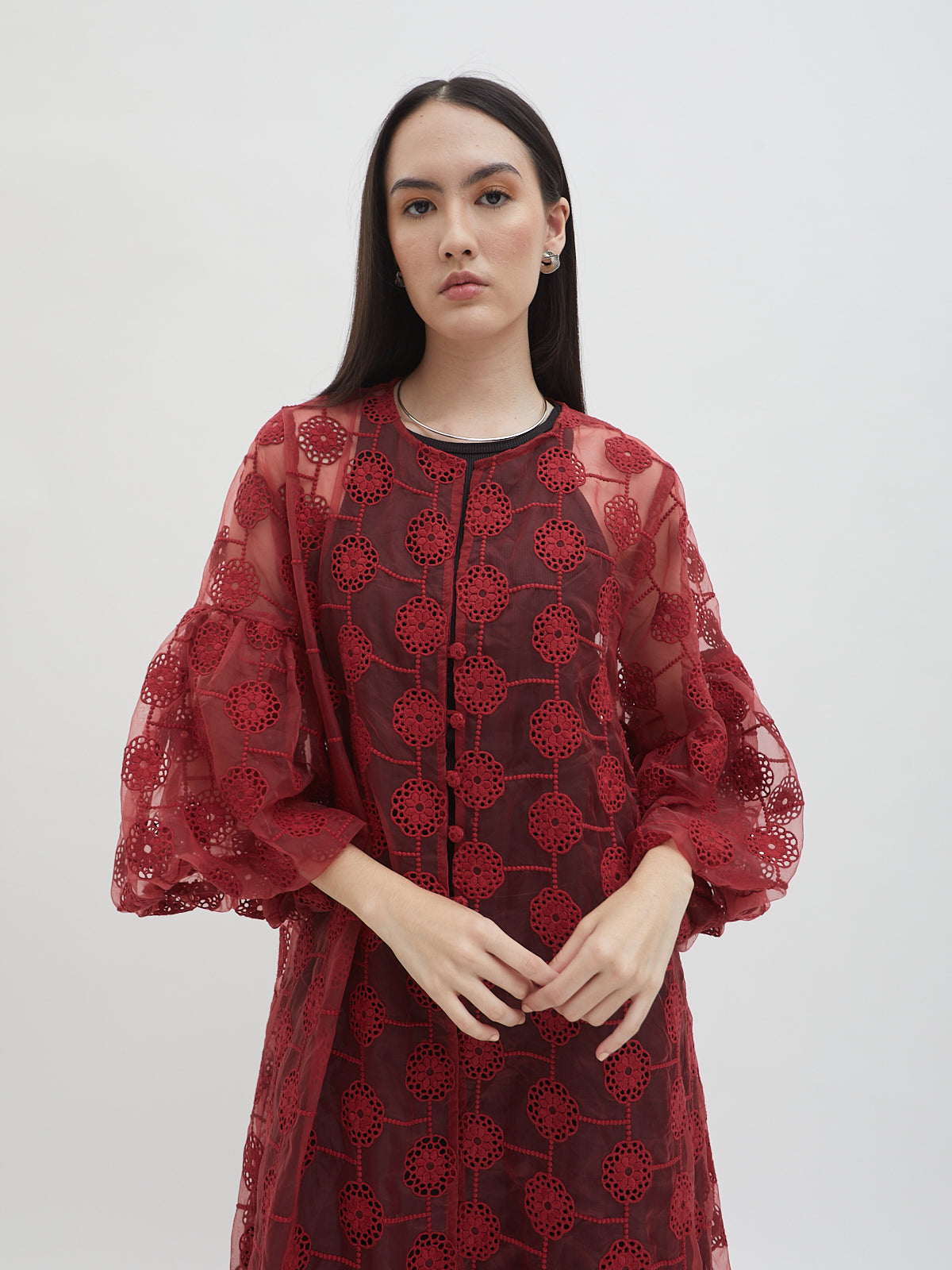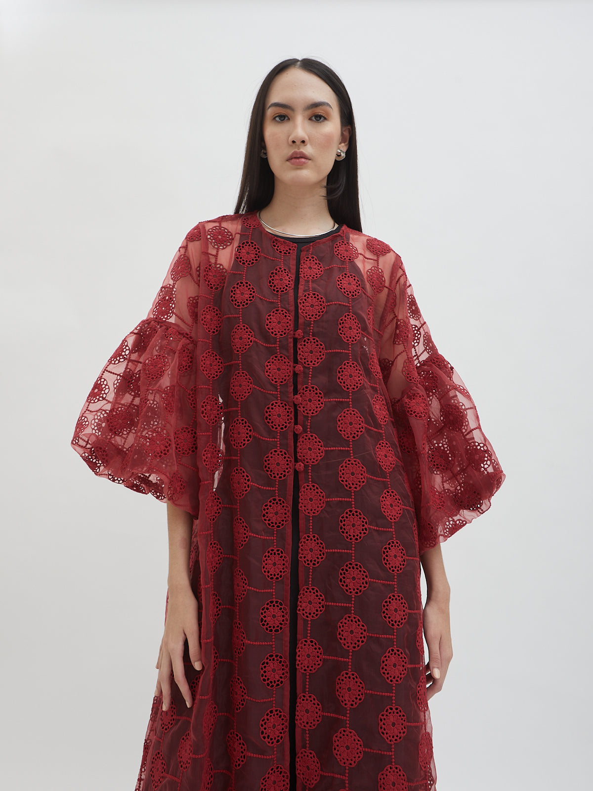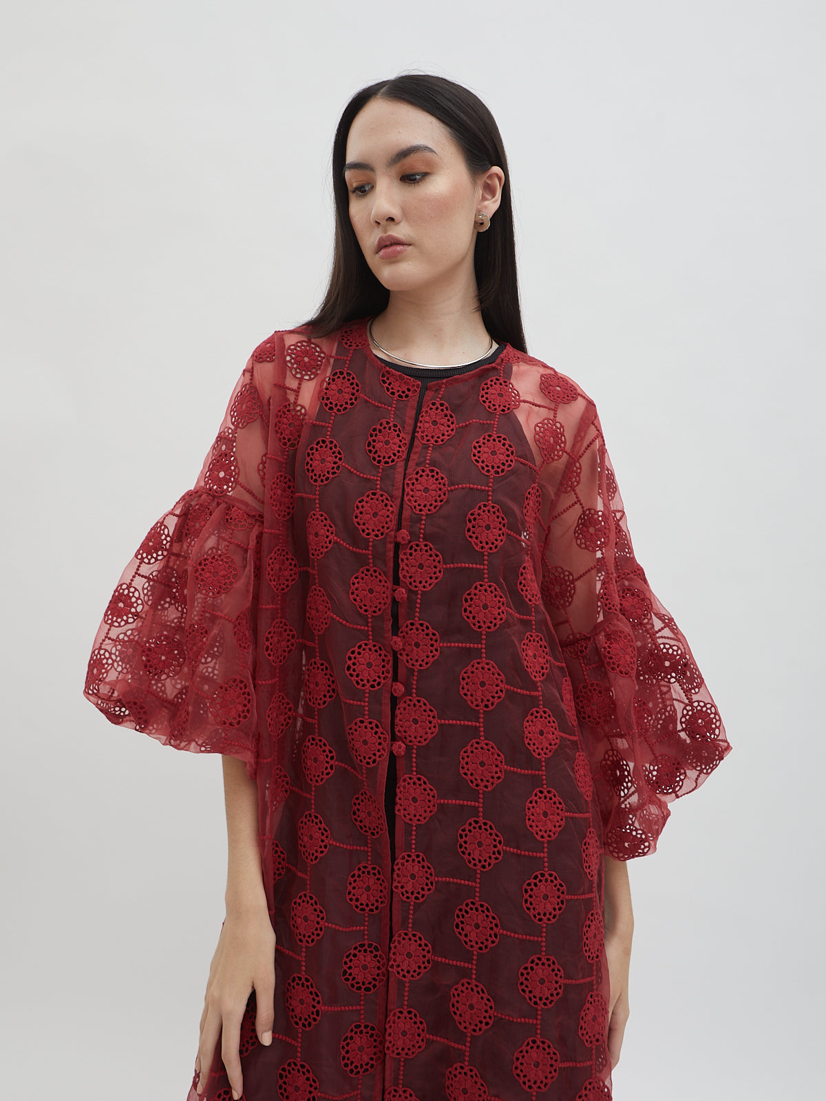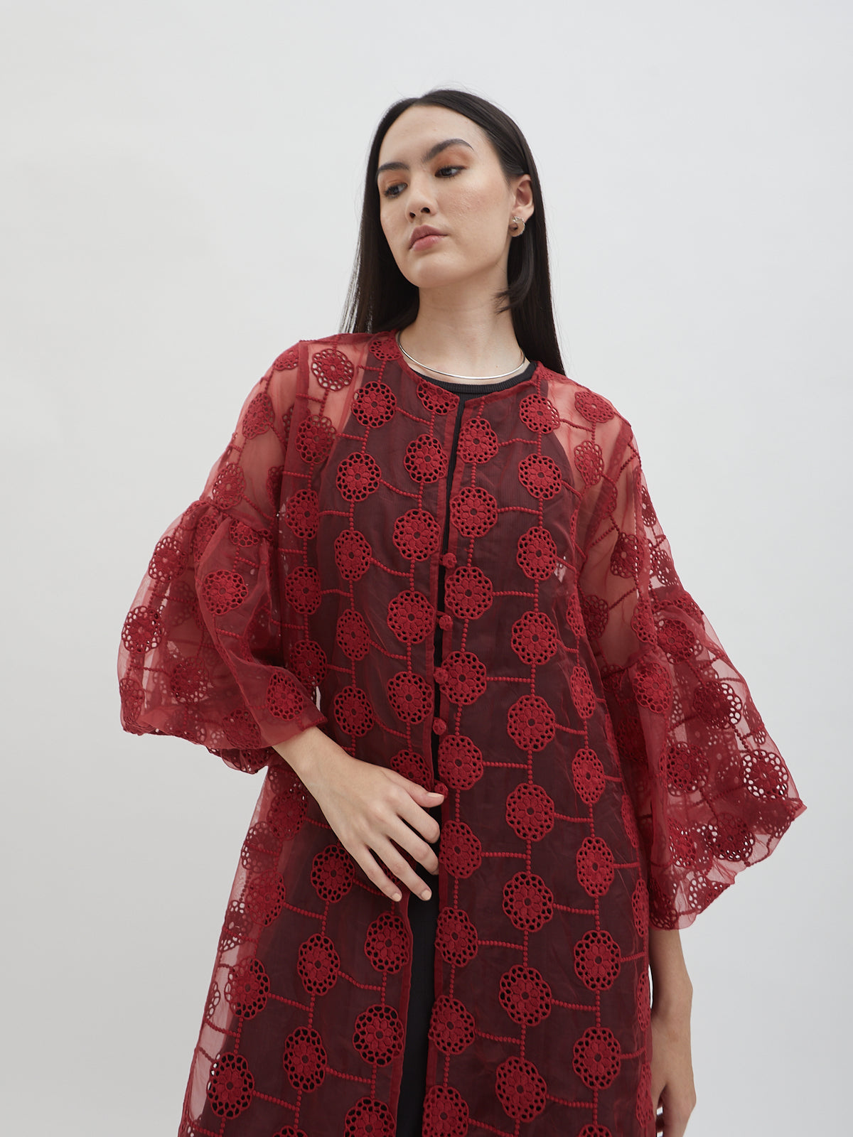 Alma Long Outer hadir dengan desain elegan yang memadukan bahan embroidery berkualitas dengan motif unik. Potongan longgar dan ringan menjadikannya pilihan sempurna untuk layering, memberikan tampilan yang anggun dan nyaman sepanjang hari.