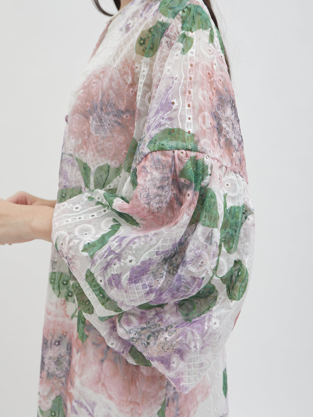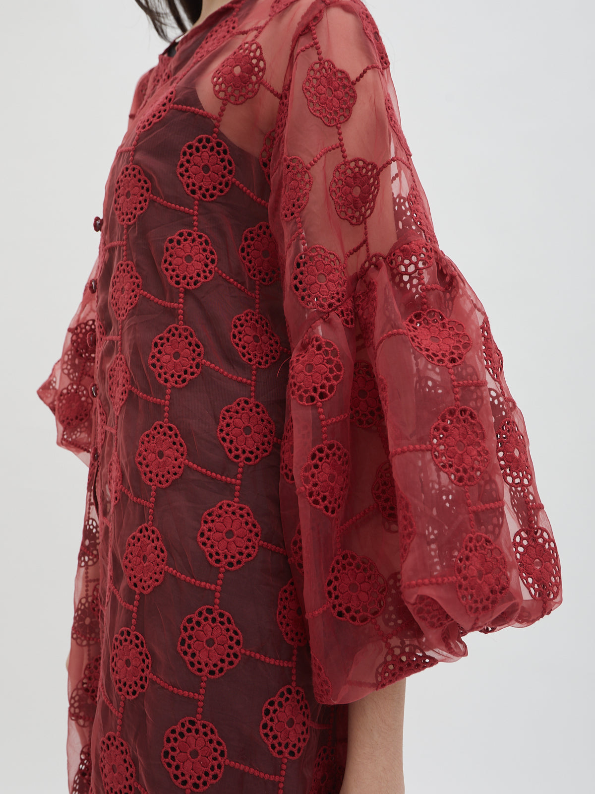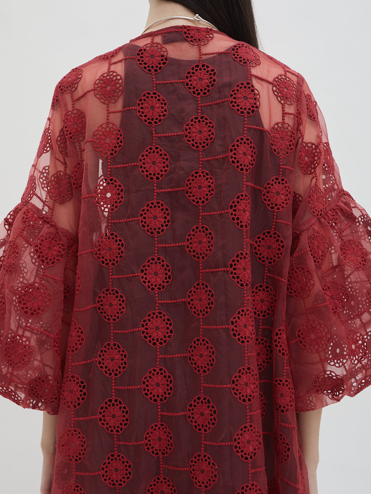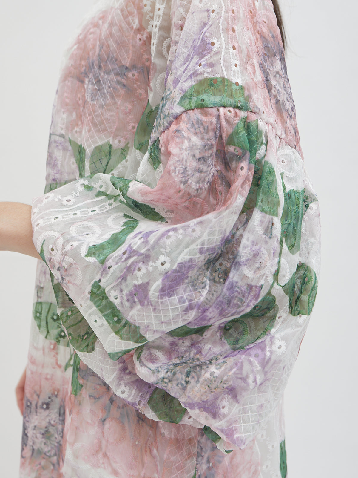 Lengan puff tiga perempat menambah kesan dramatis, sementara kancing depan membuatnya fleksibel untuk dikenakan terbuka atau tertutup. Tersedia dalam dua pilihan warna: Red dan Multi, cocok untuk berbagai gaya dan acara.
