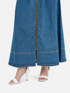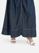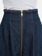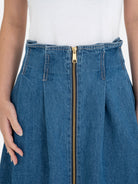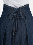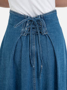 Rok denim feminin dengan siluet flare tiga dimensi yang memberi efek flowy dan anggun. Didesain dengan resleting depan dan detail tali serut di bagian belakang, menambah sentuhan unik dan menawan saat dipakai.