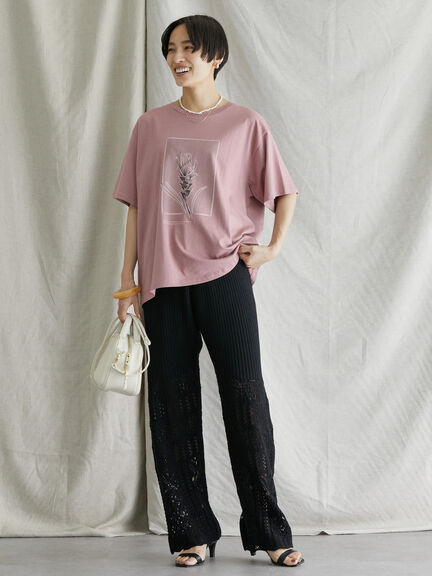 T-shirt ini terbuat dari kain yang bertekstur halus sehingga nyaman untuk dikenakan sehari-hari. Terdapat desain yang di print pada bagian depan, cocok di padukan dengan celana maupun rok favorit kalian!