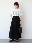 T-shirt ini terbuat dari kain yang bertekstur halus sehingga nyaman untuk dikenakan sehari-hari. Terdapat desain yang di print pada bagian depan, cocok di padukan dengan celana maupun rok favorit kalian!