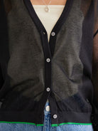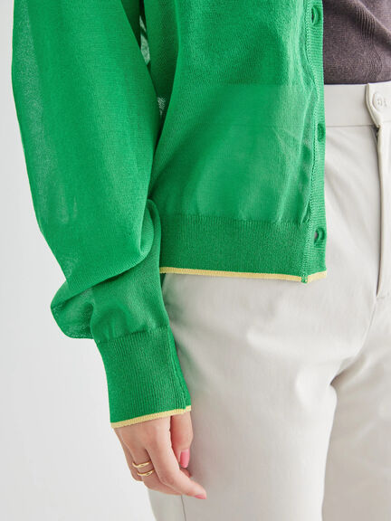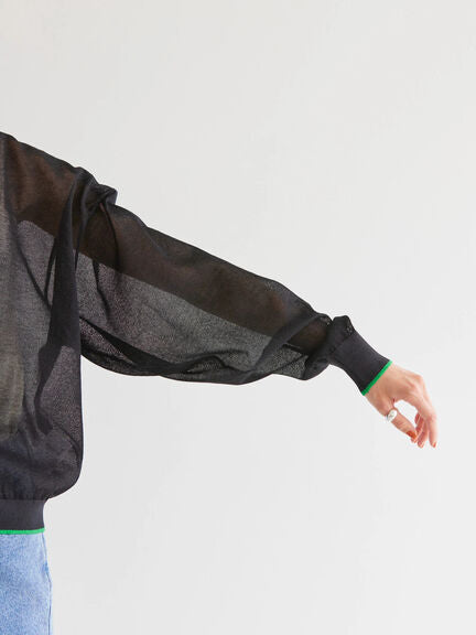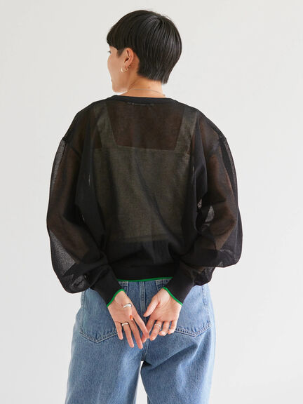 Cardigan Sheer dengan model transparan ini terbuat dari bahan rajut halus dan cutting lengan yang loose, serta full kancing pada bagian depan. Padukan dengan celana untuk tampilan kasual atau rok untuk tampilan yang lebih feminin.
