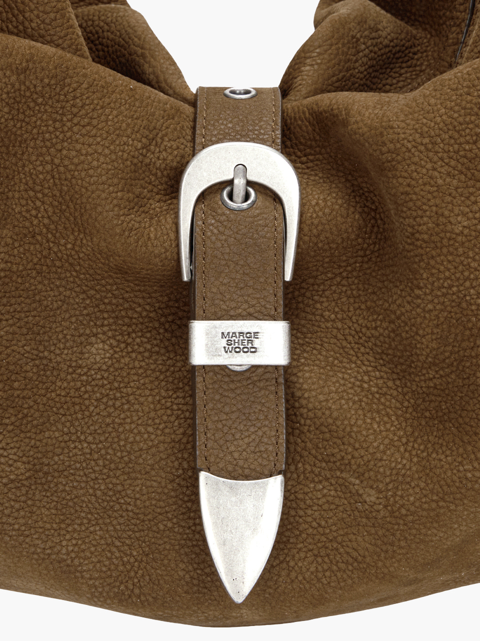 The Belted Hobo Bag is a modern twist on the classic hobo silhouette, featuring a soft, slouchy shape with structured elements for added refinement. The adjustable belted strap with a metal buckle adds a bold accent, while the spacious interior ensures effortless practicality. Designed with a zip-fastening closure, a single shoulder strap, and an engraved Margesherwood logo, this bag balances style and function seamlessly.