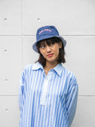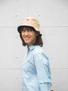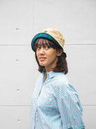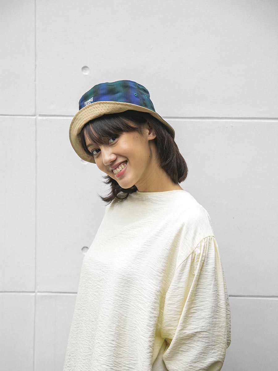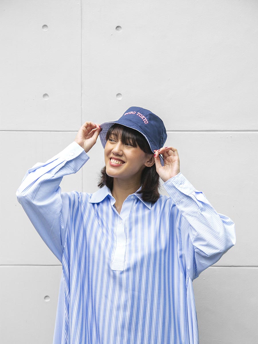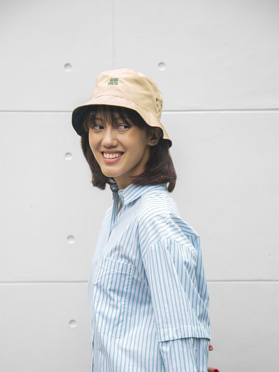 Topi ini di desain dengan dua sisi dan dapat dipakai bolak balik.
