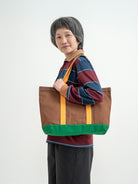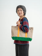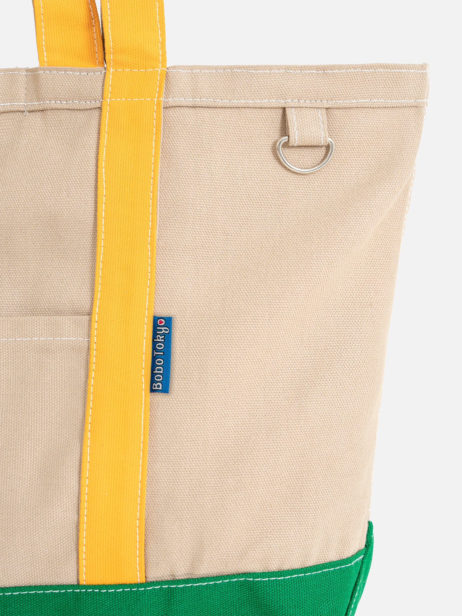 Tas tote dengan desain simpel dan clean yang mudah dipadukan untuk berbagai aktivitas sehari-hari. Kombinasi warna yang playful memberikan sentuhan unik namun tetap versatile untuk berbagai gaya, baik casual maupun semi-formal.
