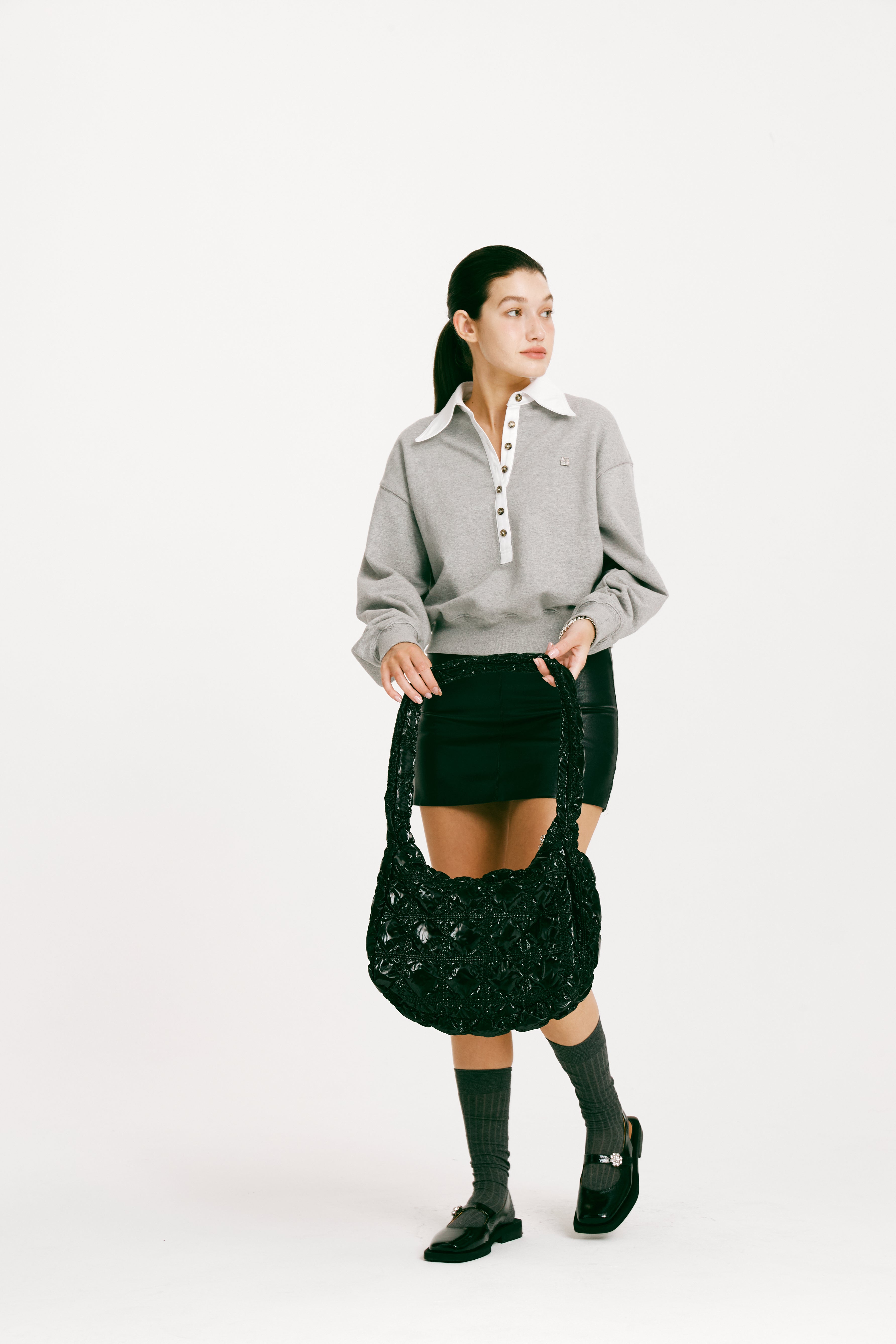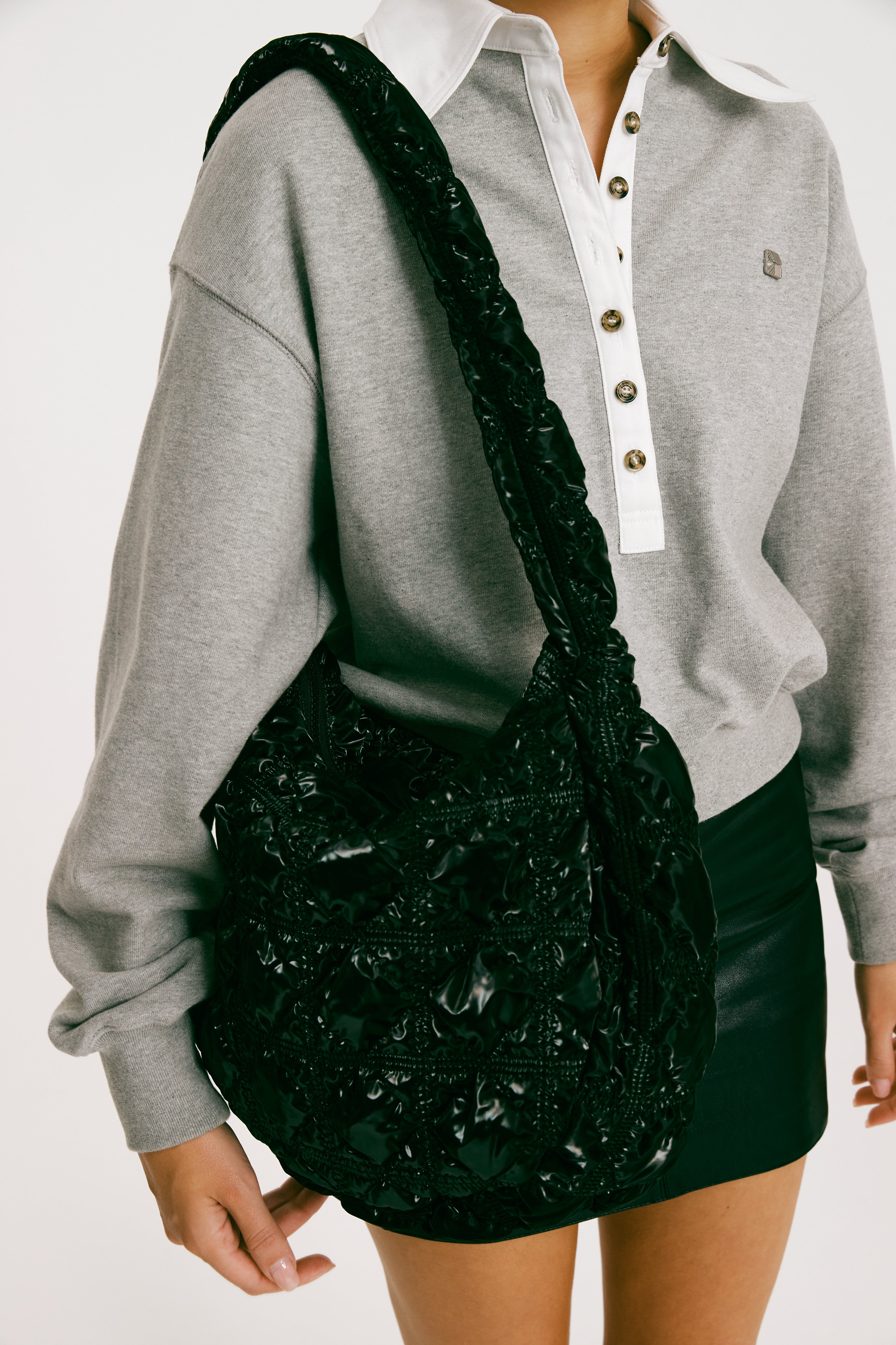 Newly updated new soft bag with the glossy material. Carlyn logo zipper tap detail. 2 ways bag for tote and crossbody. Soft and light touch quilting detail. Light and comfortable wear with enough storage.