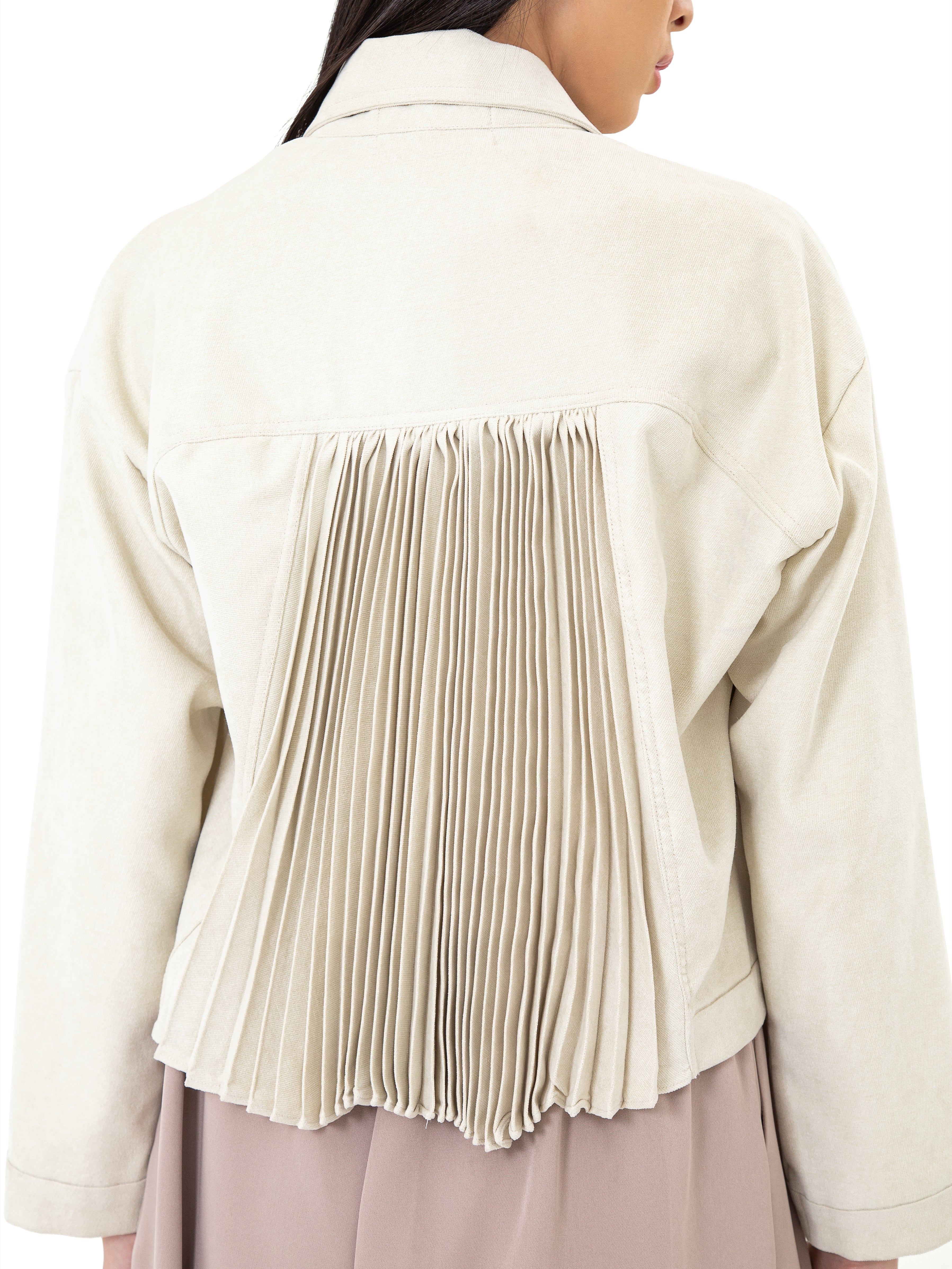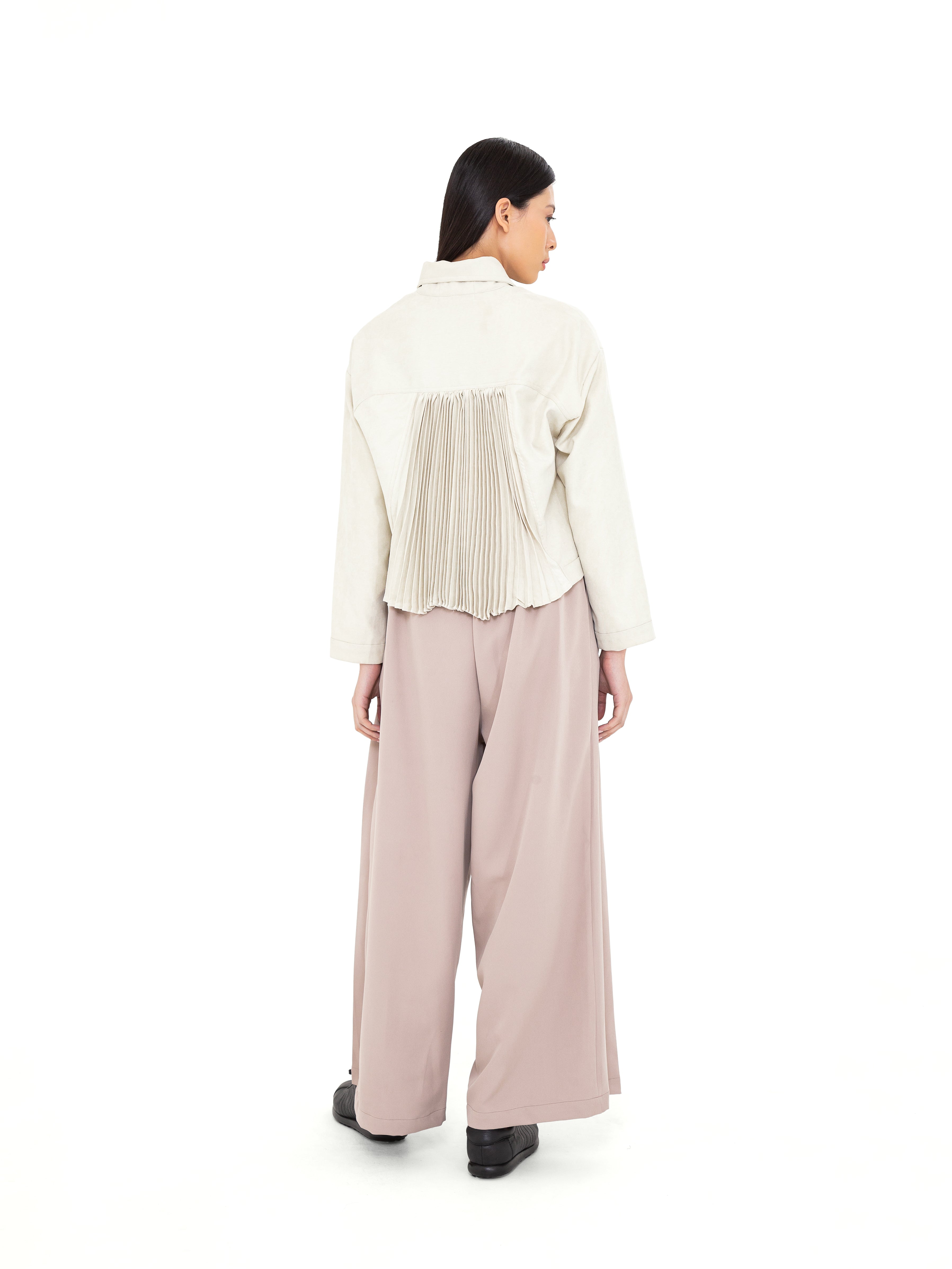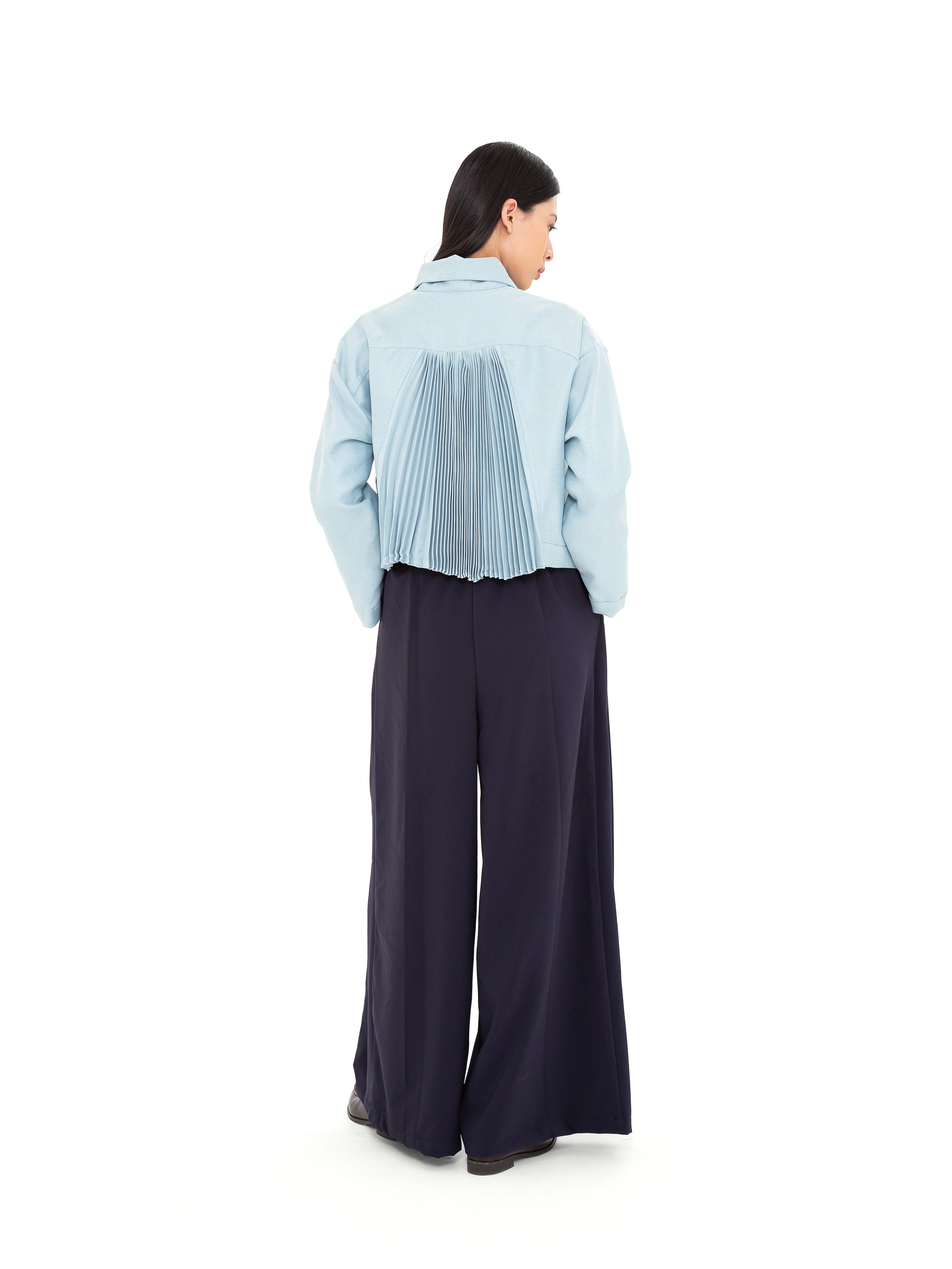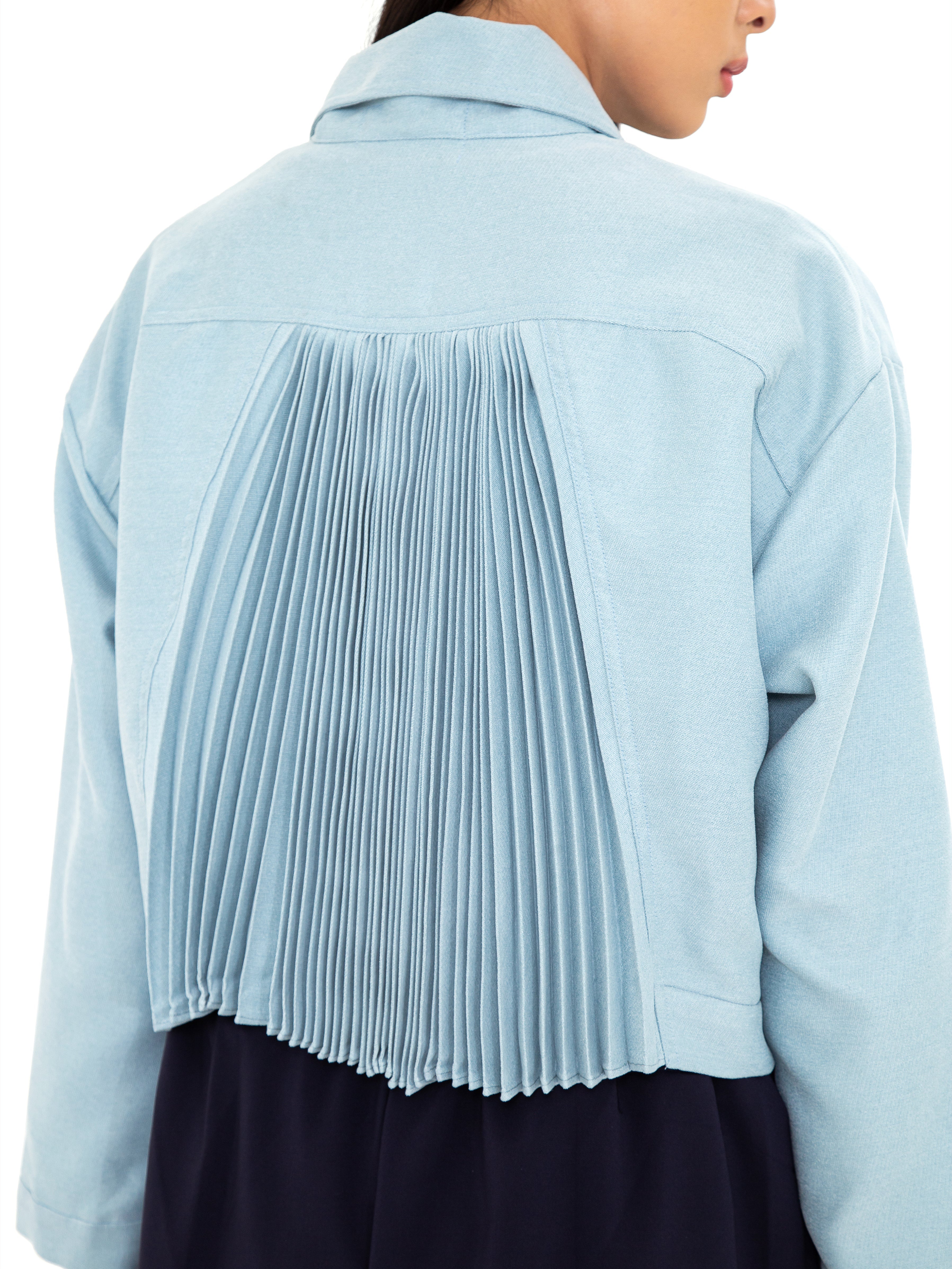 Potongan cropped dengan siluet loose memberikan fleksibilitas dalam styling, sementara pilihan warna Ivory yang elegan dan Turquoise Blue yang subtle menjadikannya statement piece yang tetap versatile. Desainnya yang timeless dengan sentuhan modern membuat Crone Outer ideal untuk berbagai kesempatan, dari kasual hingga semi-formal.