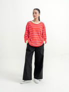 Long sleeve tee dengan motif stripe yang playful dan nyaman dipakai sehari-hari. Terbuat dari bahan katun 100% yang lembut, breathable, dan tidak panas. Detail ruffle pada hem dan lengan memberikan sentuhan manis, sementara rib cuff kontras menambah karakter pada desain. Cocok untuk gaya kasual, layering, atau dipadukan dengan berbagai bawahan favoritmu.