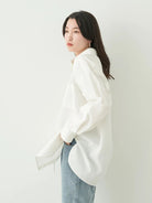 Kemeja oversize wanita ini di desain full kancing dan terdapat saku pada bagian depan, cocok dikenakan sebagai outer maupun sebagai kemeja biasa. Padukan dengan rok maupun celana favorit kalian!