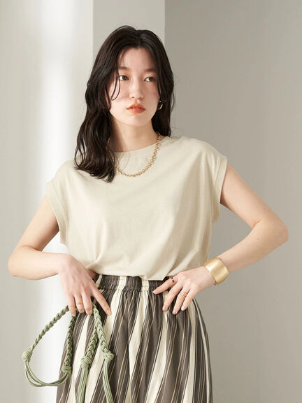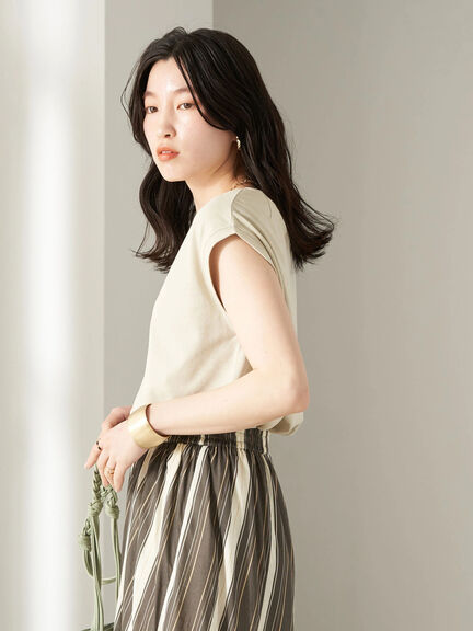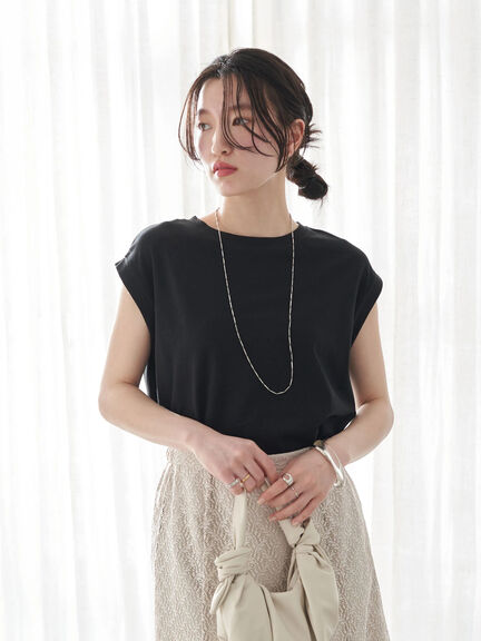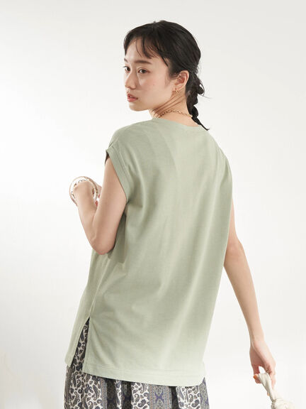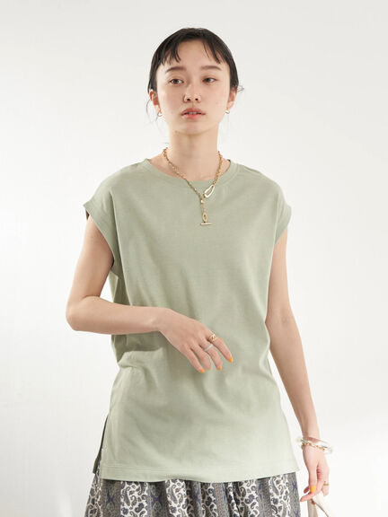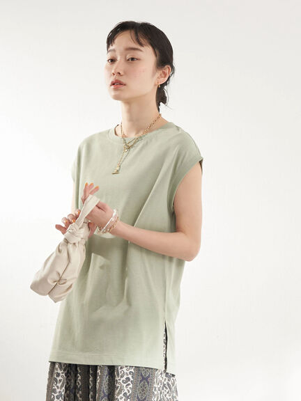 [Rib part] 57% Cotton 38% Rayon 5% polyurethane - Sleeveless pullover blended with the environmentally friendly rayon