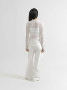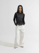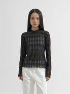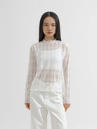 Fumie Sheer Check Pullover dengan desain transparan berpola kotak yang memberi kesan modern sekaligus feminin. Potongan relaxed fit membuatnya nyaman digunakan sebagai inner maupun atasan kasual. Detail scalloped pada bagian hem menambahkan sentuhan manis, sementara bahan ringan transparan memberi efek stylish dengan hint sheer yang elegan.