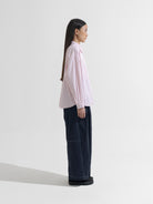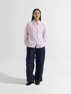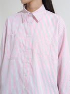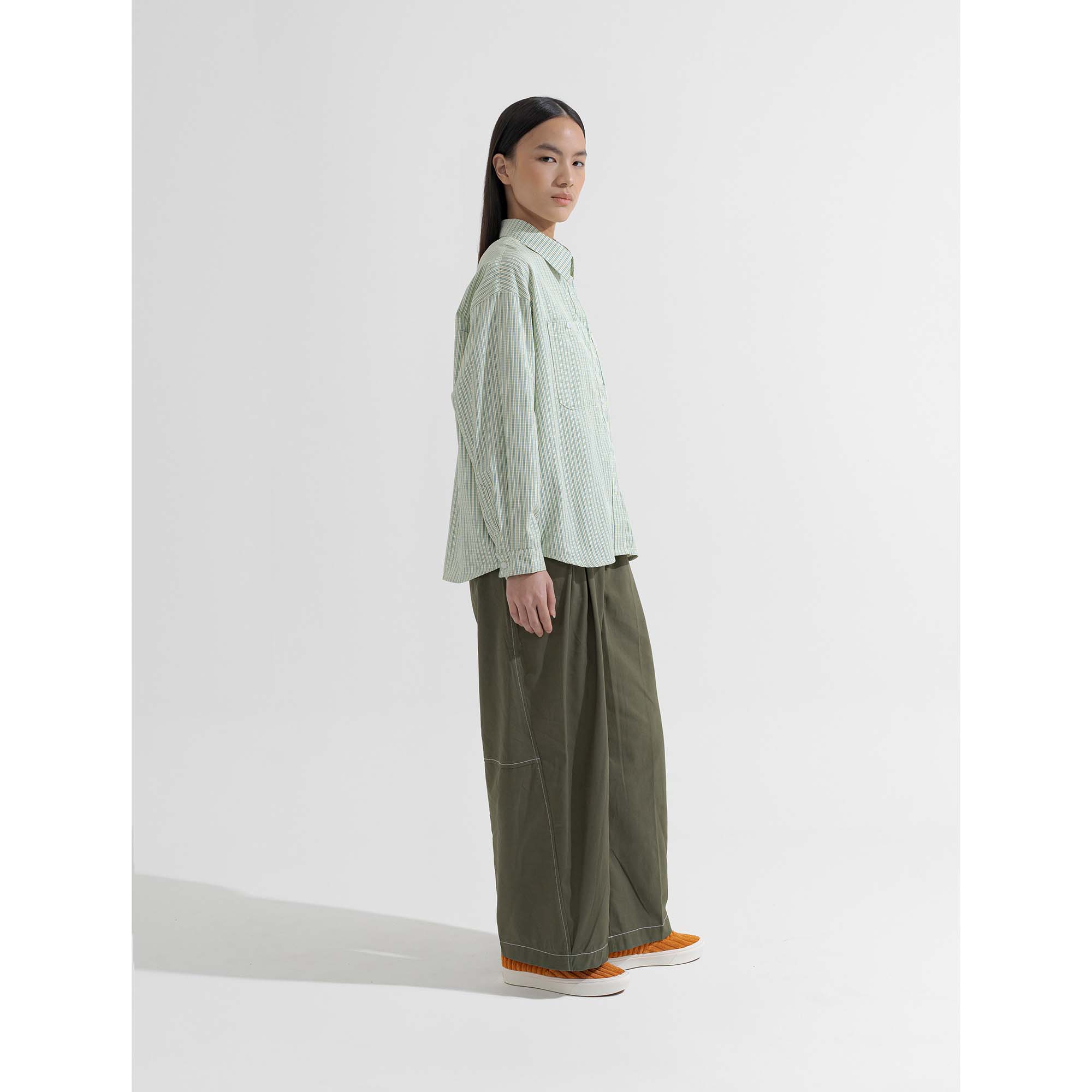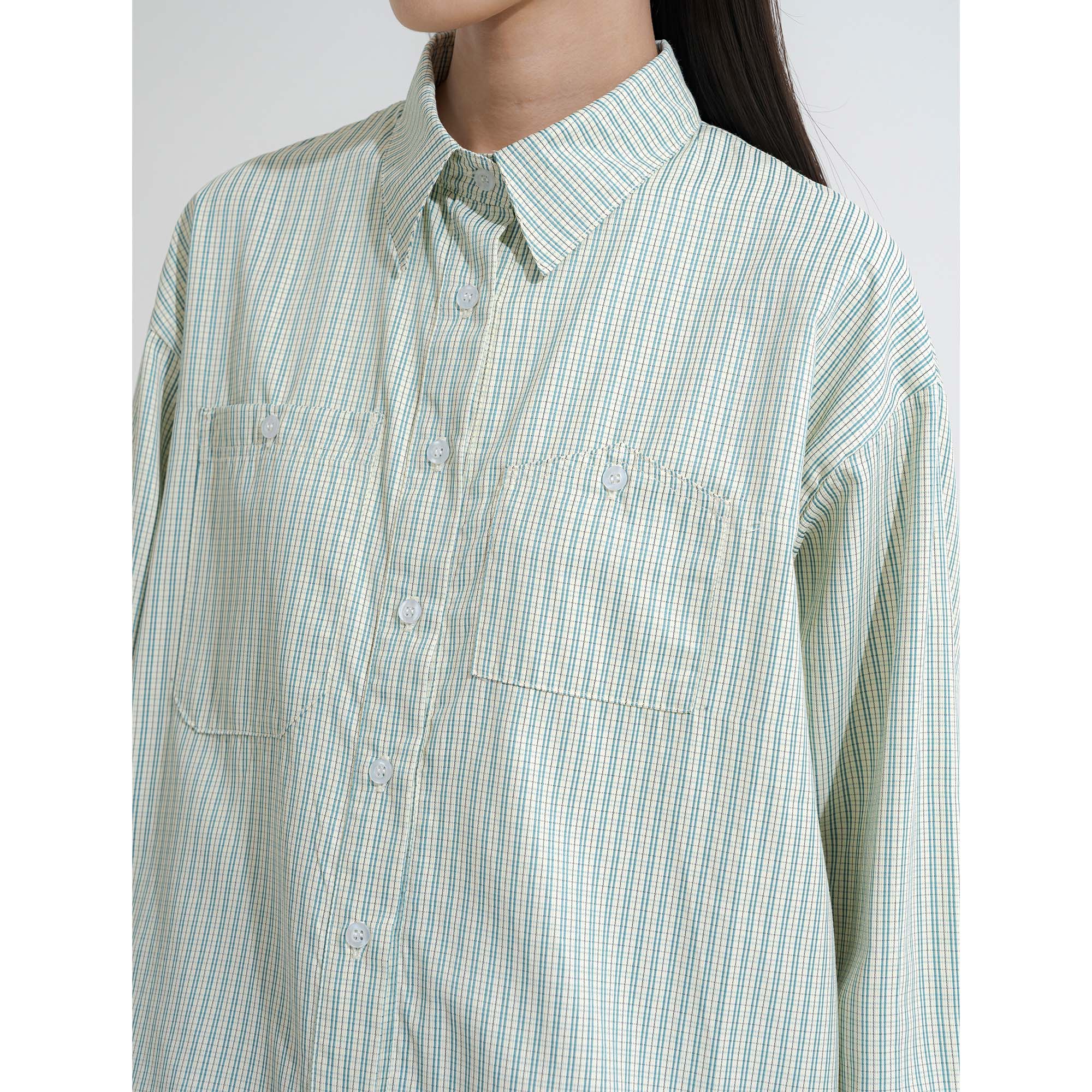 Kemeja lengan panjang dengan motif garis yang simpel dan segar. Potongan loose membuatnya nyaman dipakai sehari-hari. Detail kancing depan, kerah klasik, serta dua saku dada menambah sentuhan kasual yang tetap stylish.