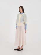 Model lengan lebar dengan panjang tiga perempat memberikan kesan santai namun tetap stylish, sehingga dapat dikenakan dalam berbagai kesempatan, baik untuk tampilan kasual maupun semi-formal.