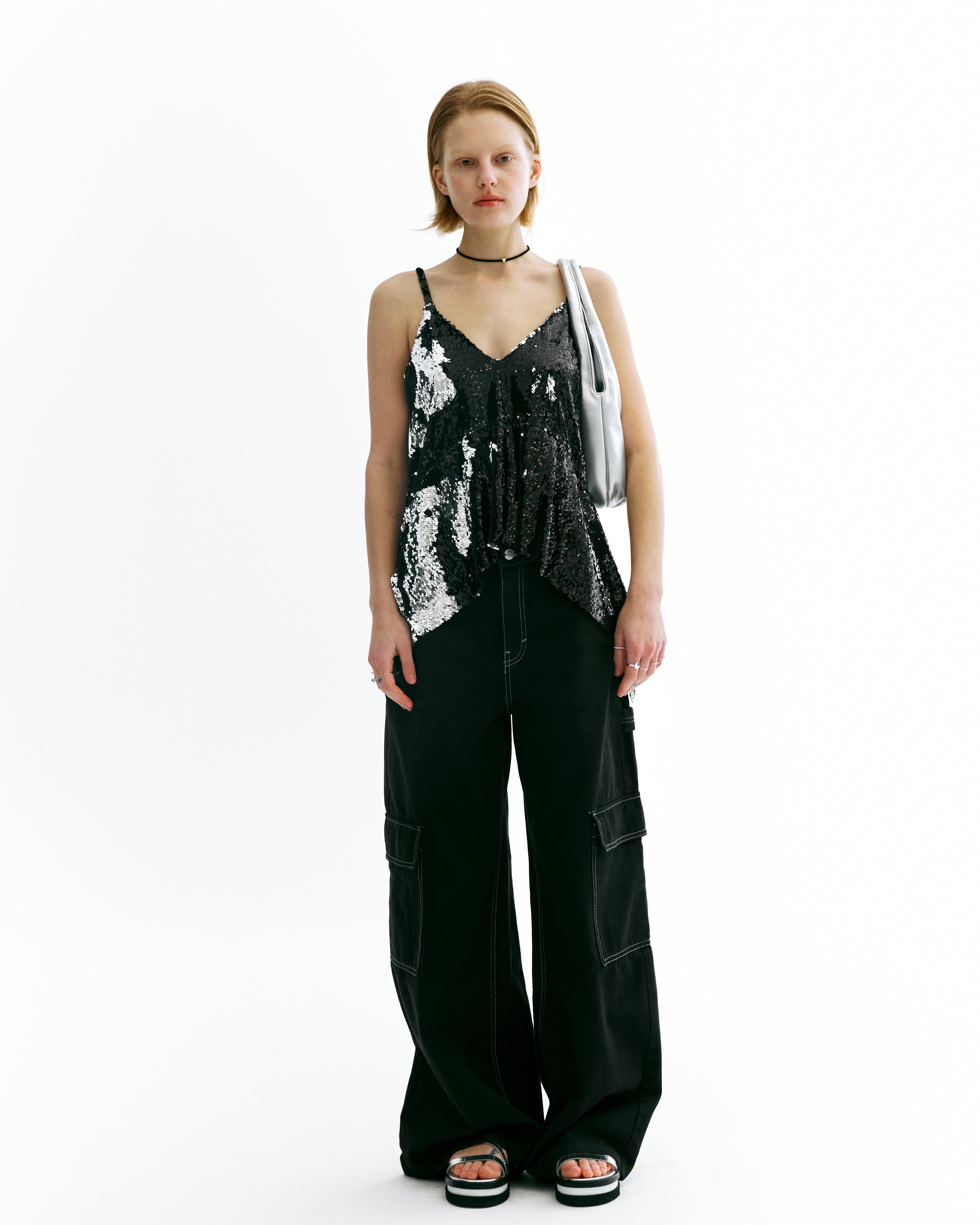It can be used as a tote and shoulder 2way, and can be easily opened and closed with hidden magnet details. Inner 1 zipper pocket, 1 open pocket.