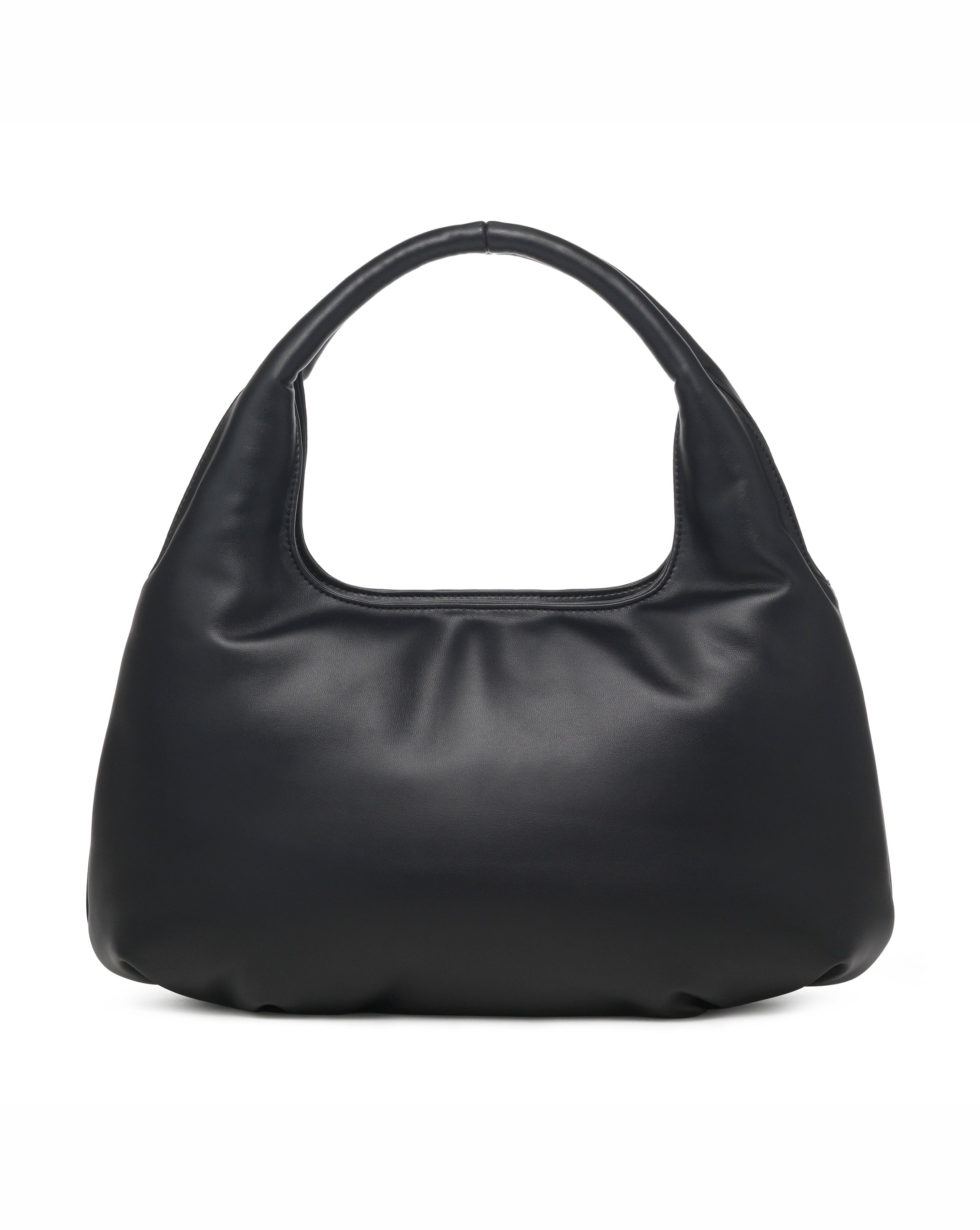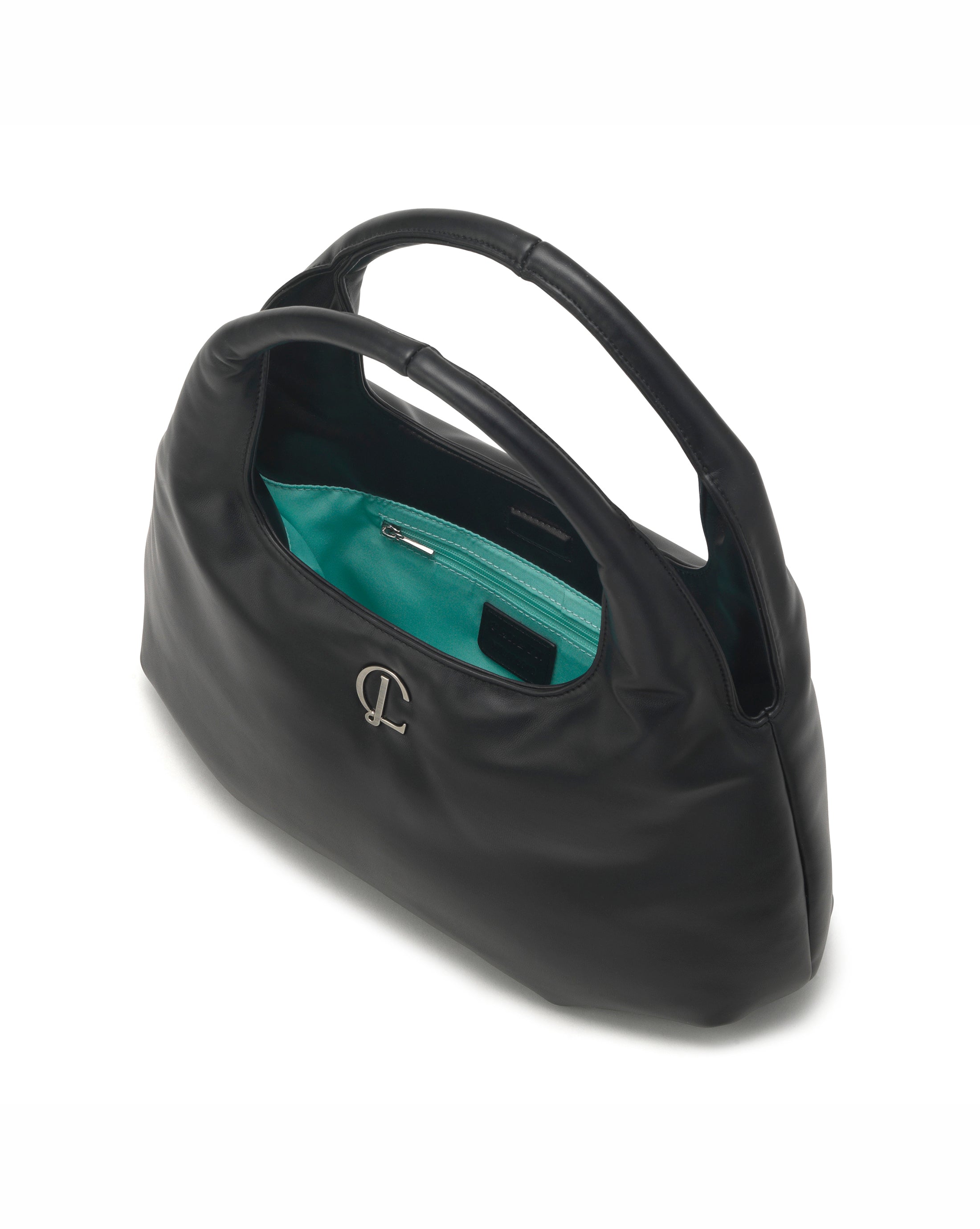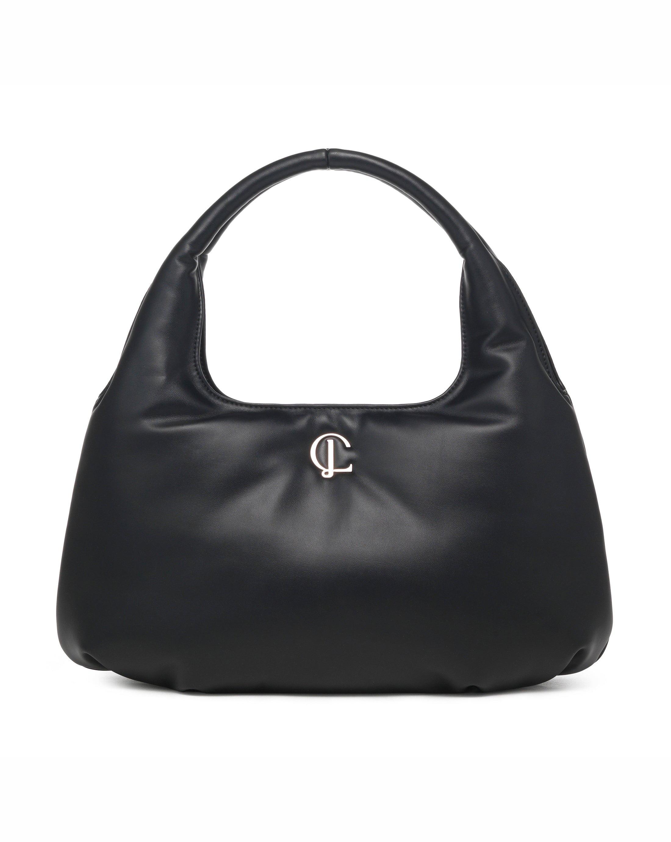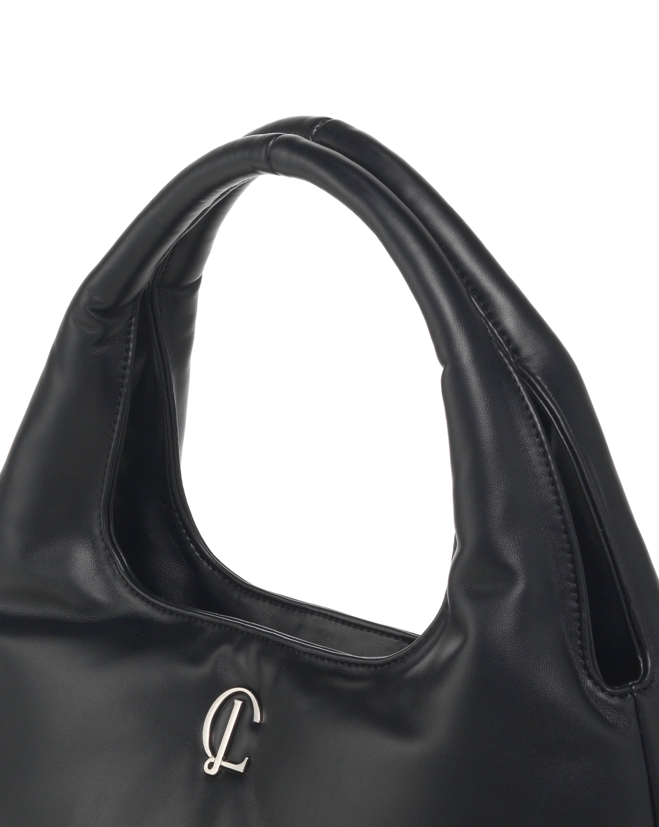 A HUG bag with a soft touch and voluminous silhouette. It can be worn as a shoulder with soft and chubby handle details and is highlighted with the CARLYN's emblem hardware.