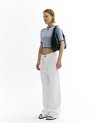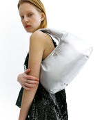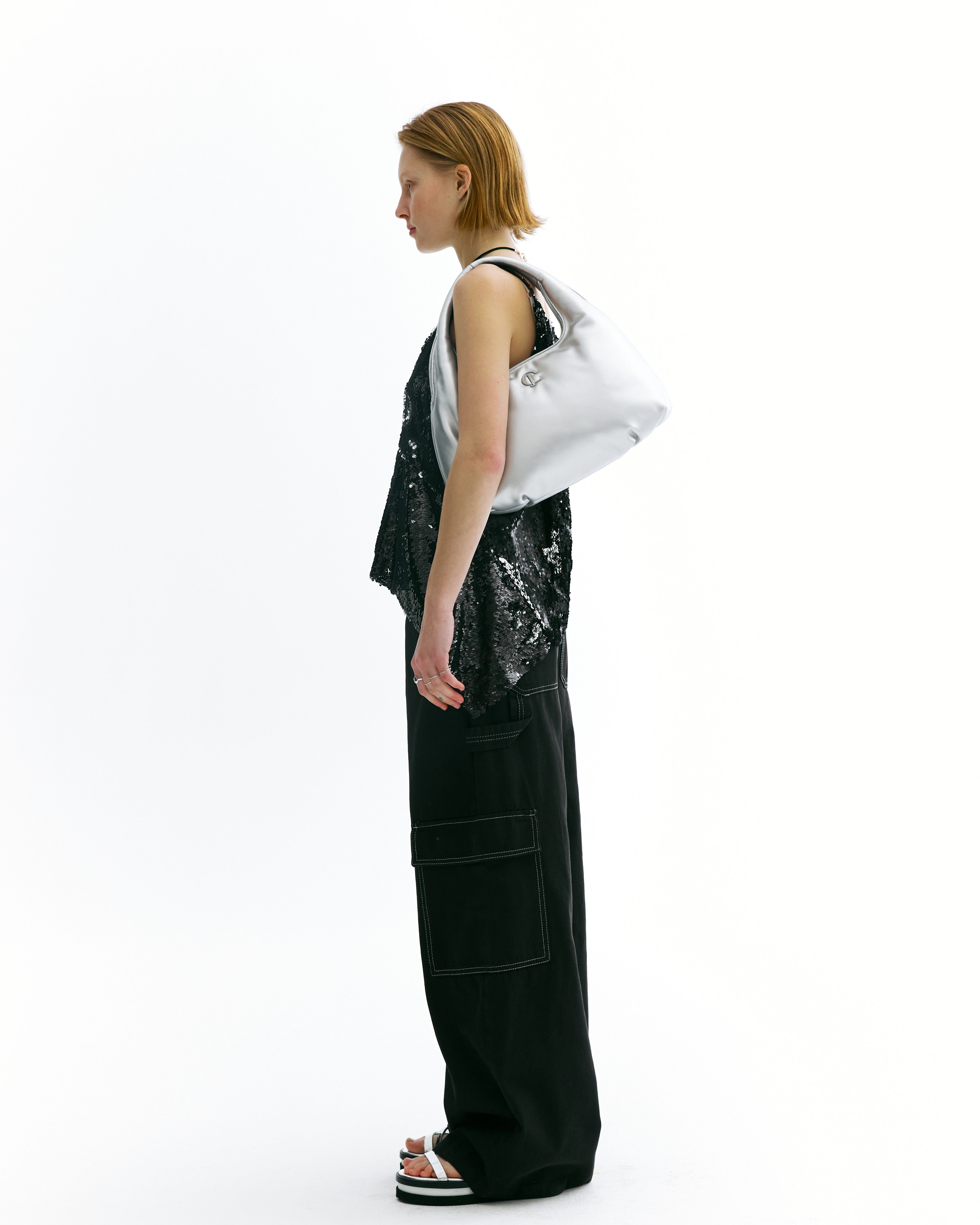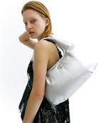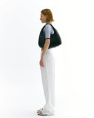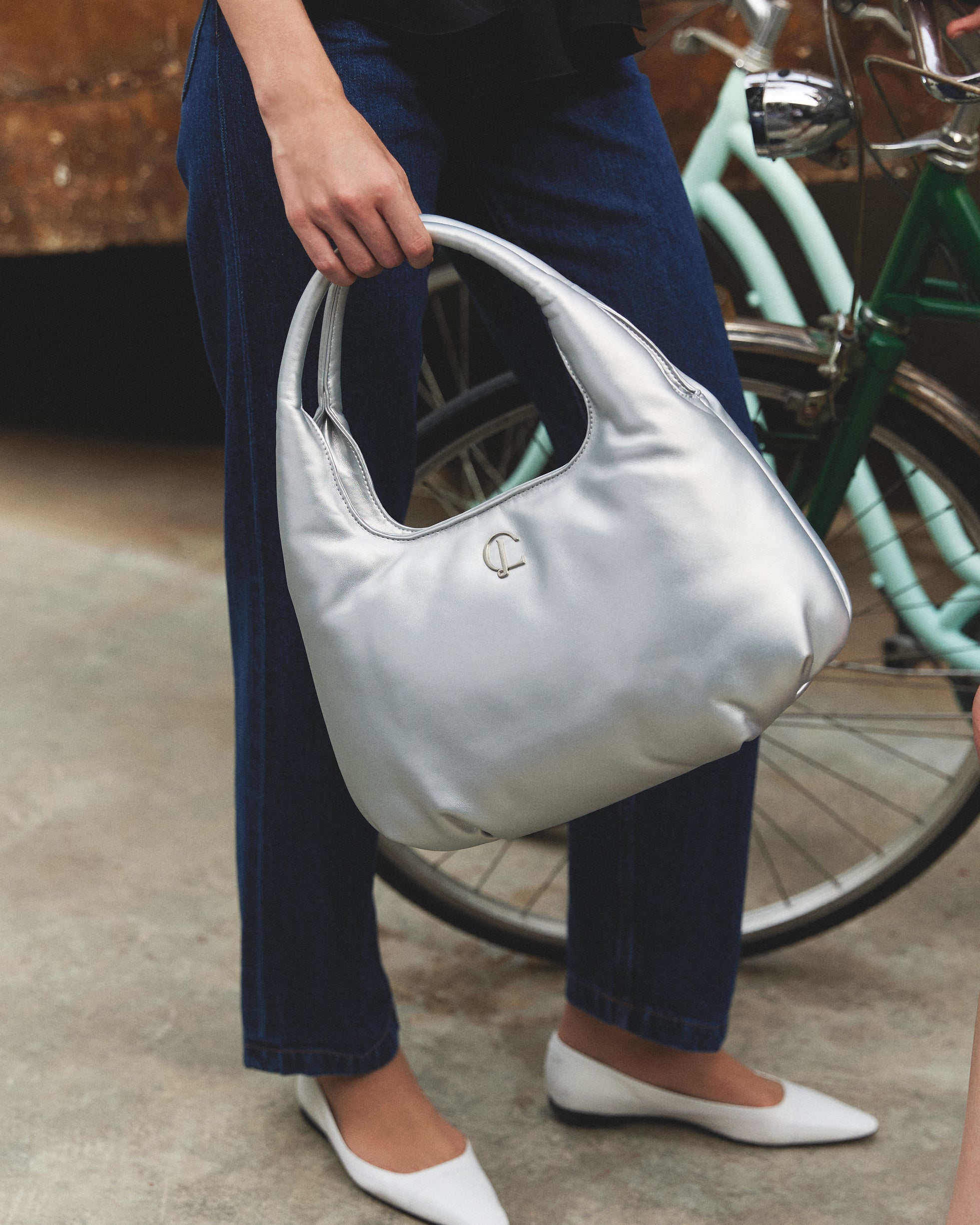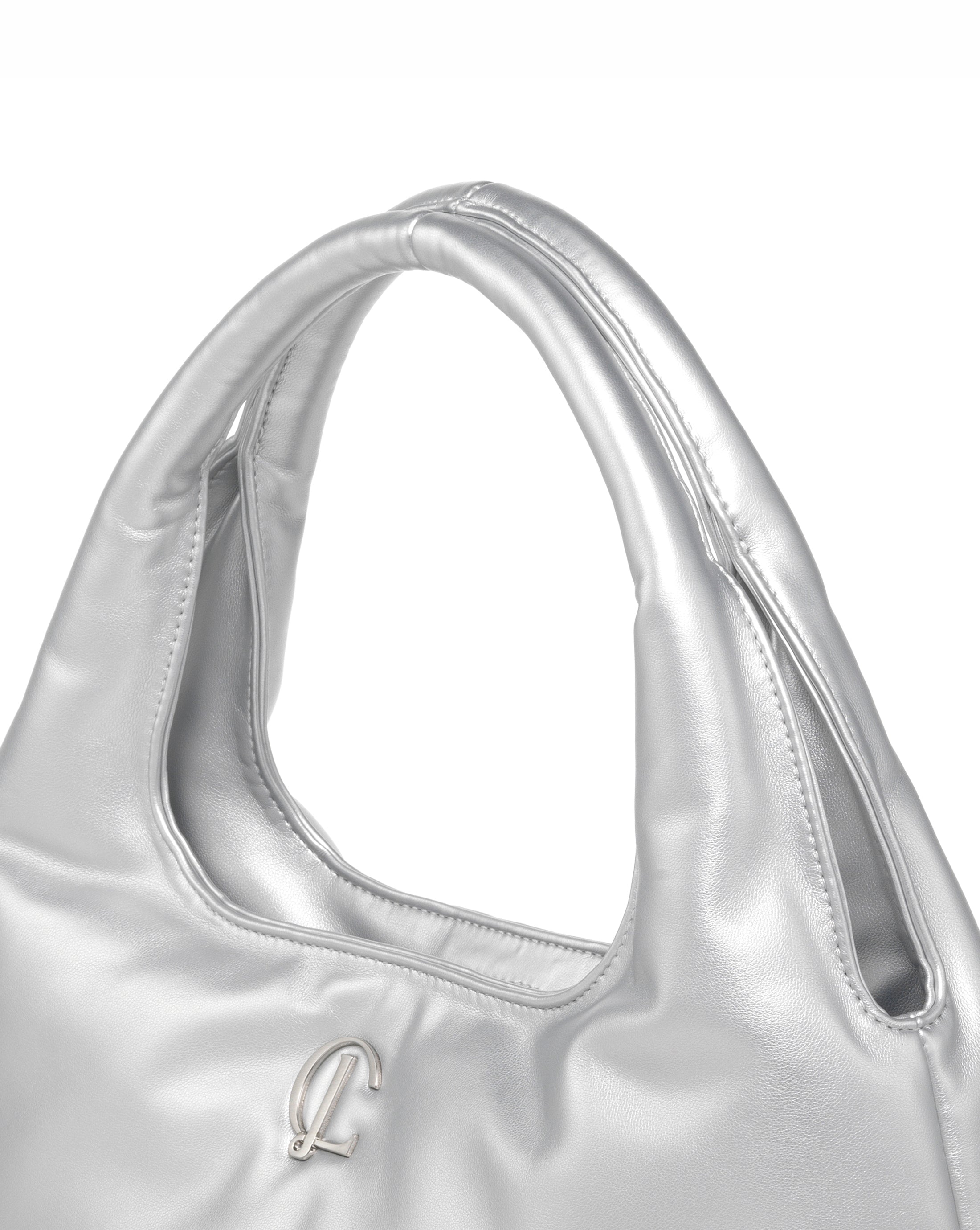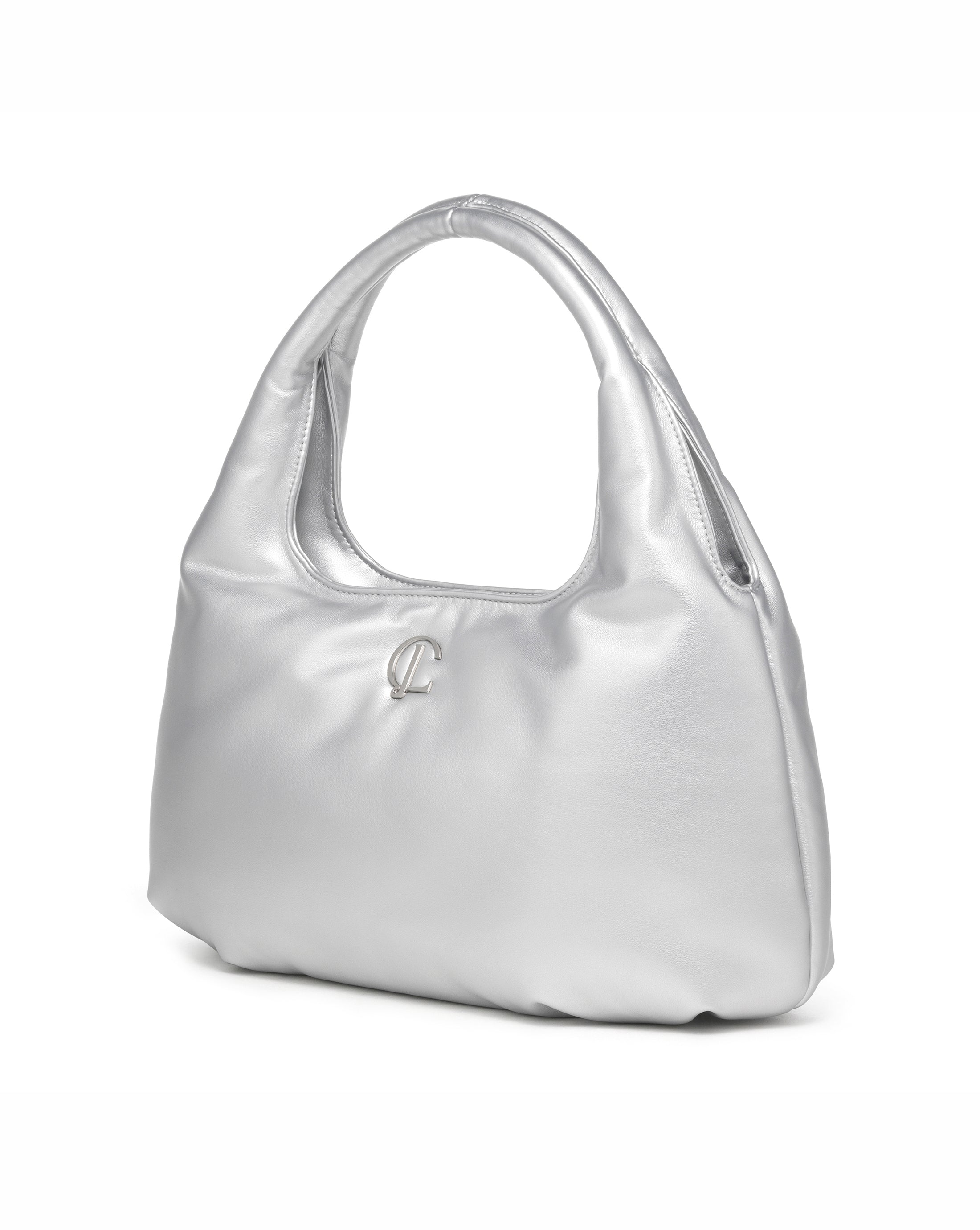 A HUG bag with a soft touch and voluminous silhouette. It can be worn as a shoulder with soft and chubby handle details and is highlighted with the CARLYN's emblem hardware.