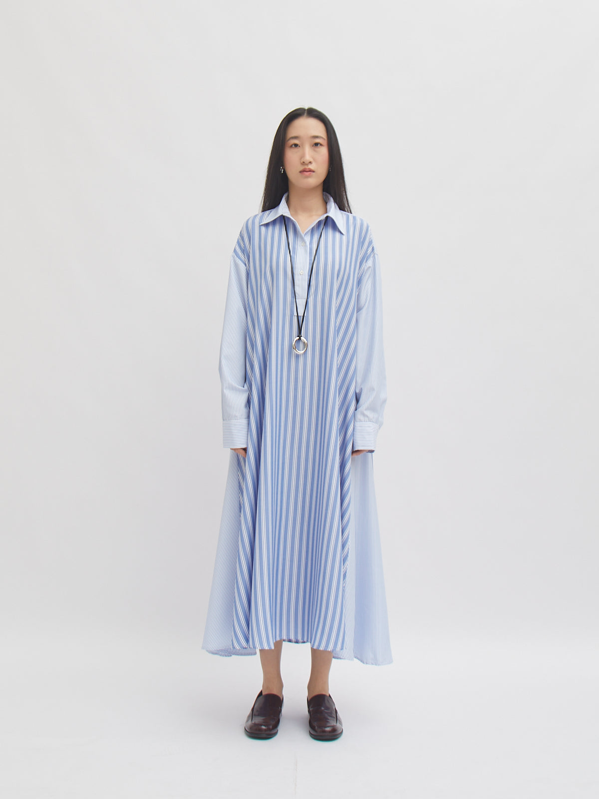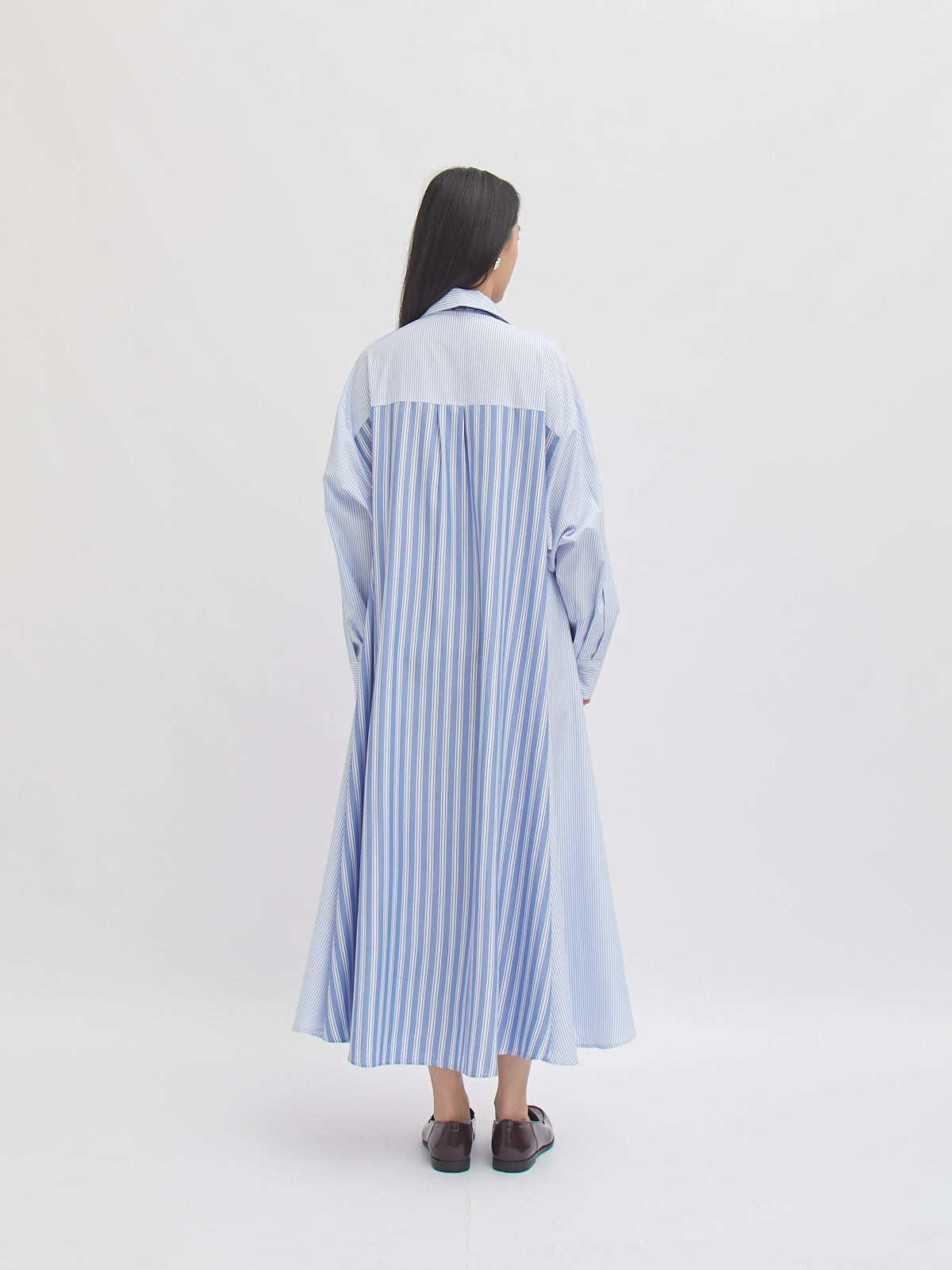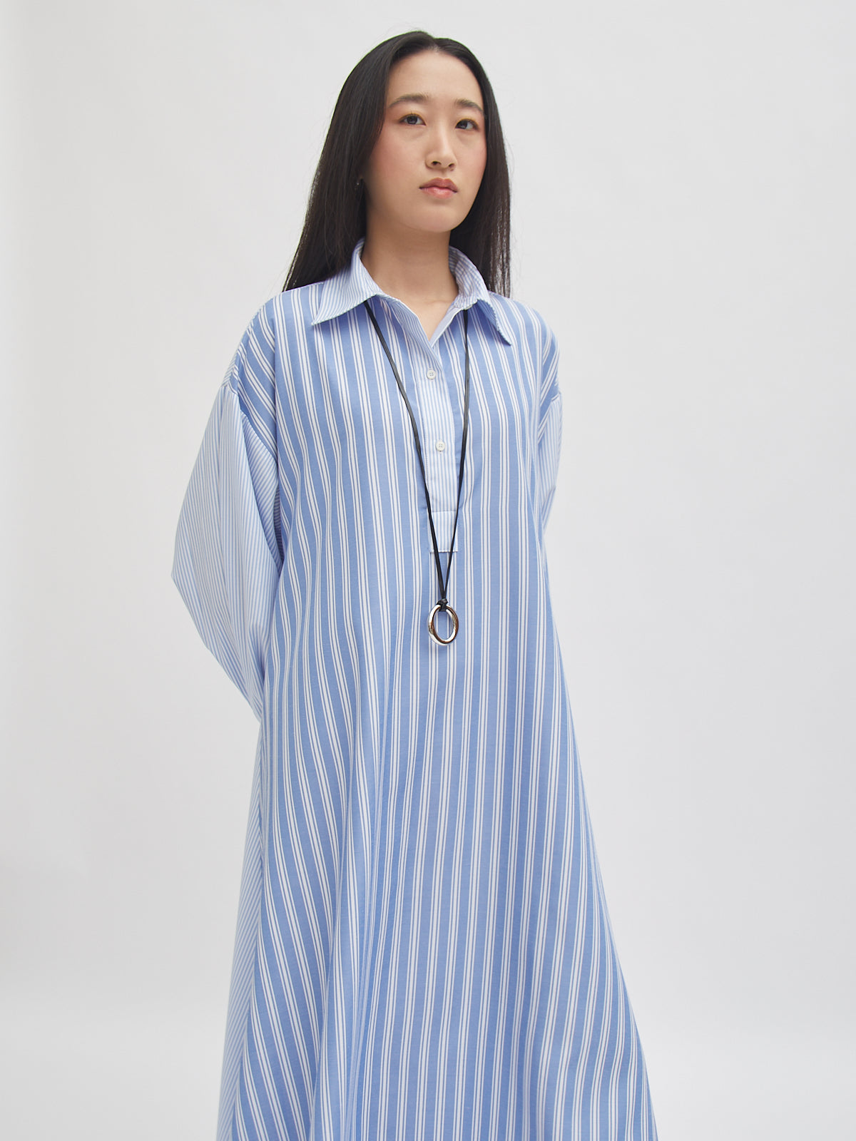 Dress bergaya shirt ini hadir dengan potongan loose dan detail garis yang memberi kesan clean dan modern. Dilengkapi kancing depan, lengan panjang, serta siluet A-line yang flowy—nyaman dipakai untuk aktivitas harian maupun acara semi-formal. Desainnya memberikan tampilan effortless yang tetap stylish.