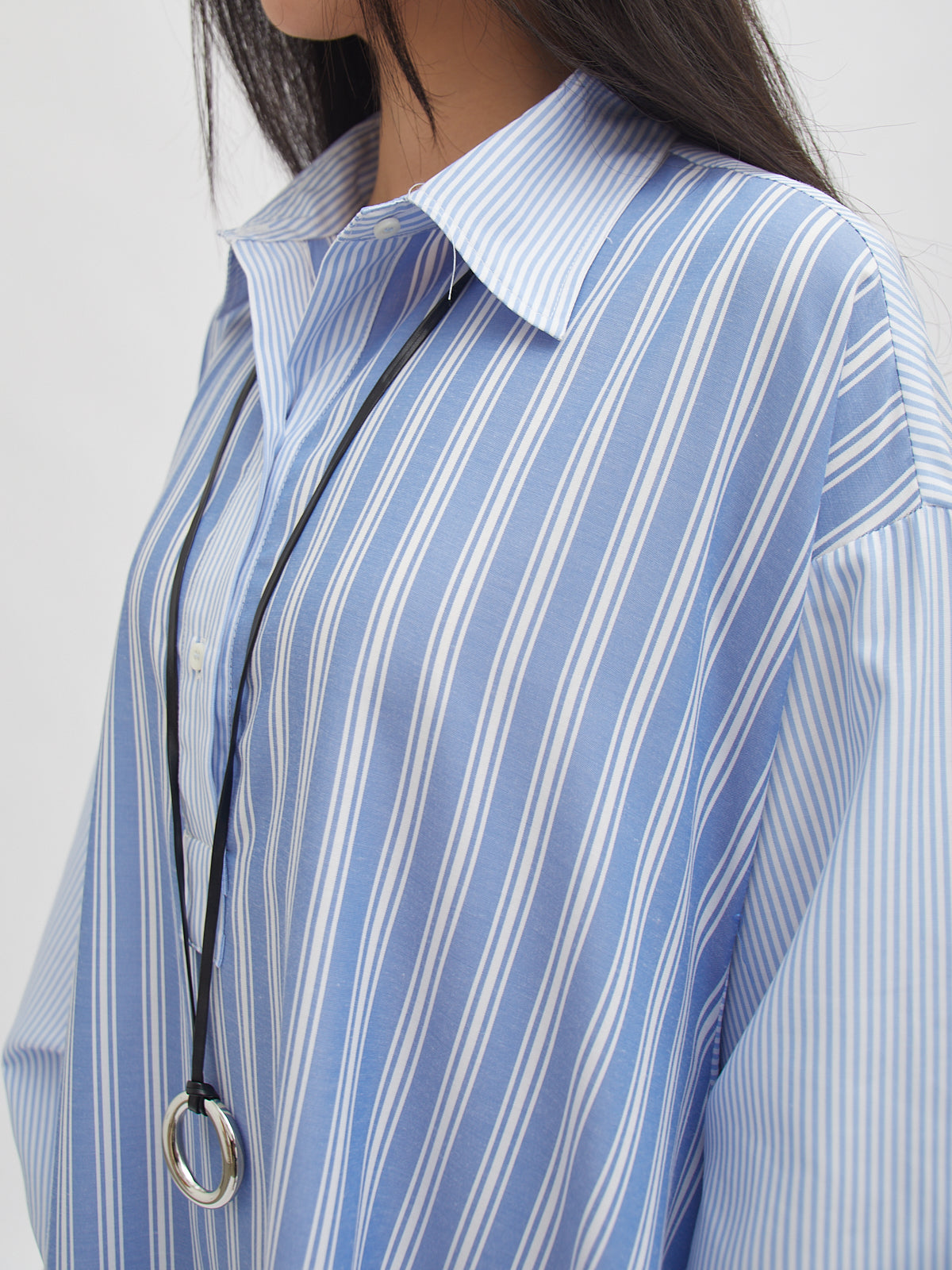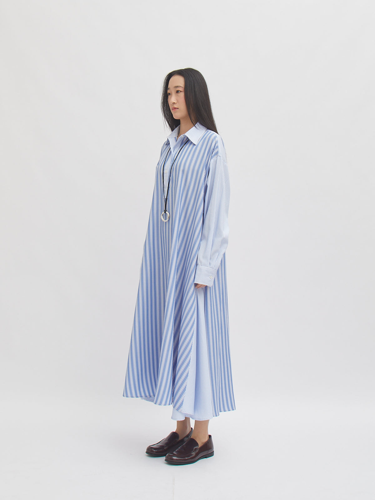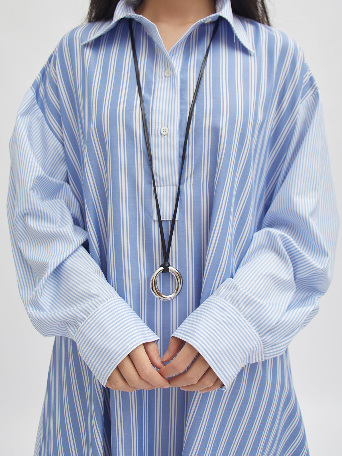 Dress bergaya shirt ini hadir dengan potongan loose dan detail garis yang memberi kesan clean dan modern. Dilengkapi kancing depan, lengan panjang, serta siluet A-line yang flowy—nyaman dipakai untuk aktivitas harian maupun acara semi-formal. Desainnya memberikan tampilan effortless yang tetap stylish.
