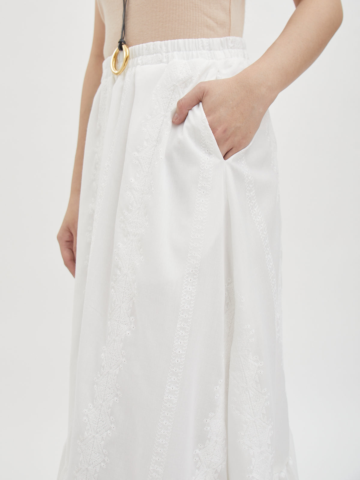 Jinan Skirt hadir dengan siluet panjang yang mengalir dan detail bordir halus, cocok untuk kamu yang suka gaya feminin namun tetap simpel. Pinggang karet yang fleksibel memberi kenyamanan ekstra, sementara cutting lebar di bagian bawah menambahkan efek flowy saat melangkah.