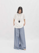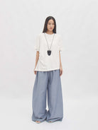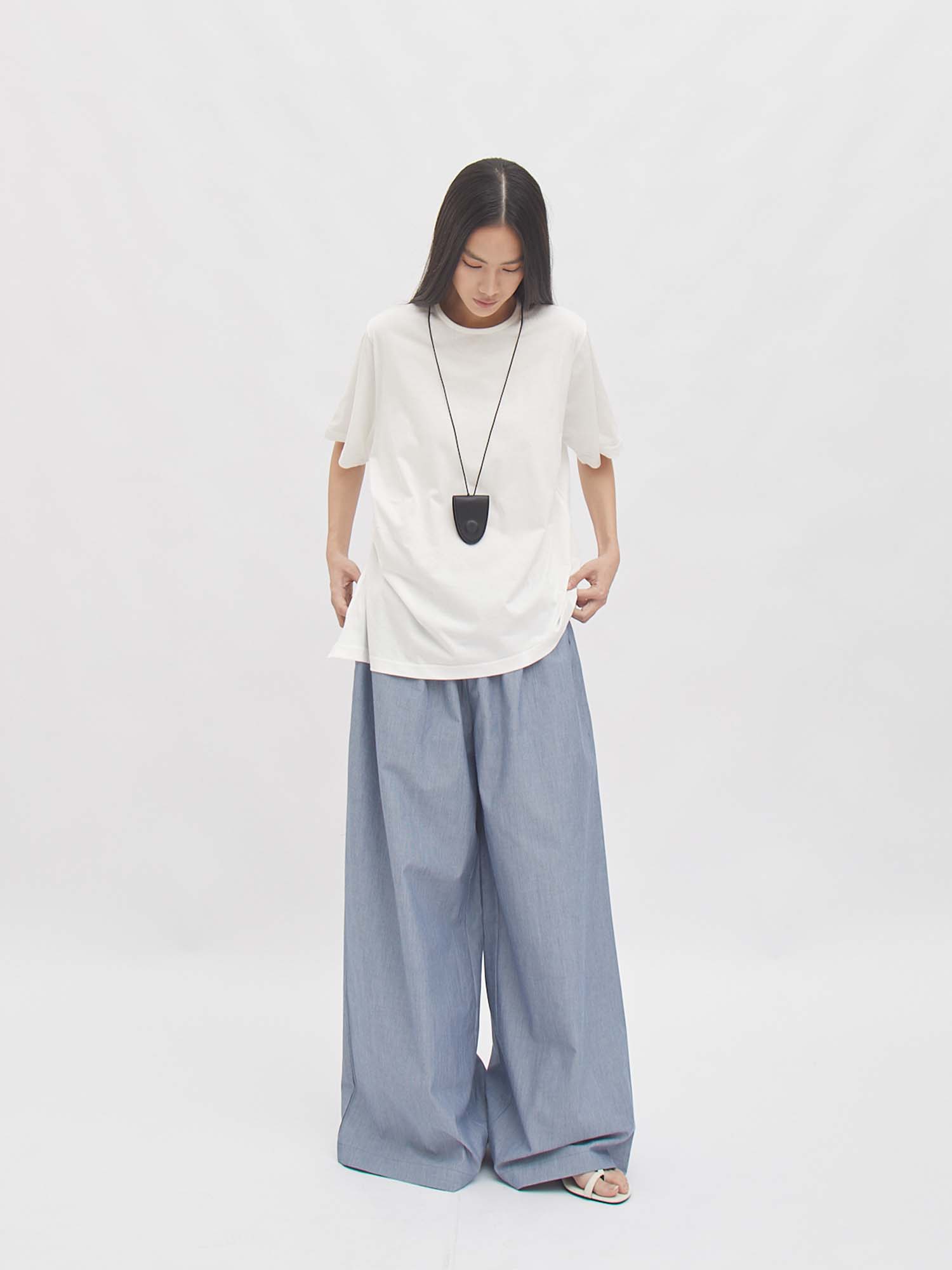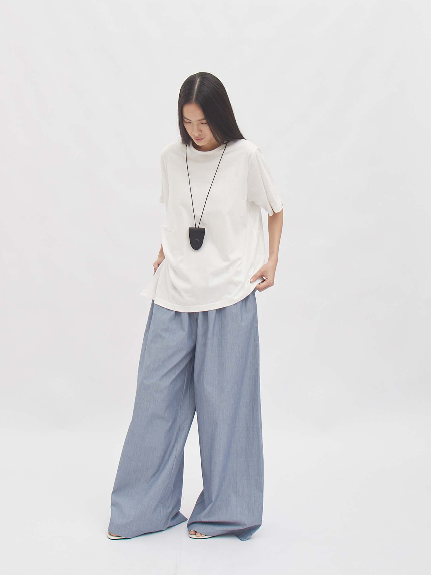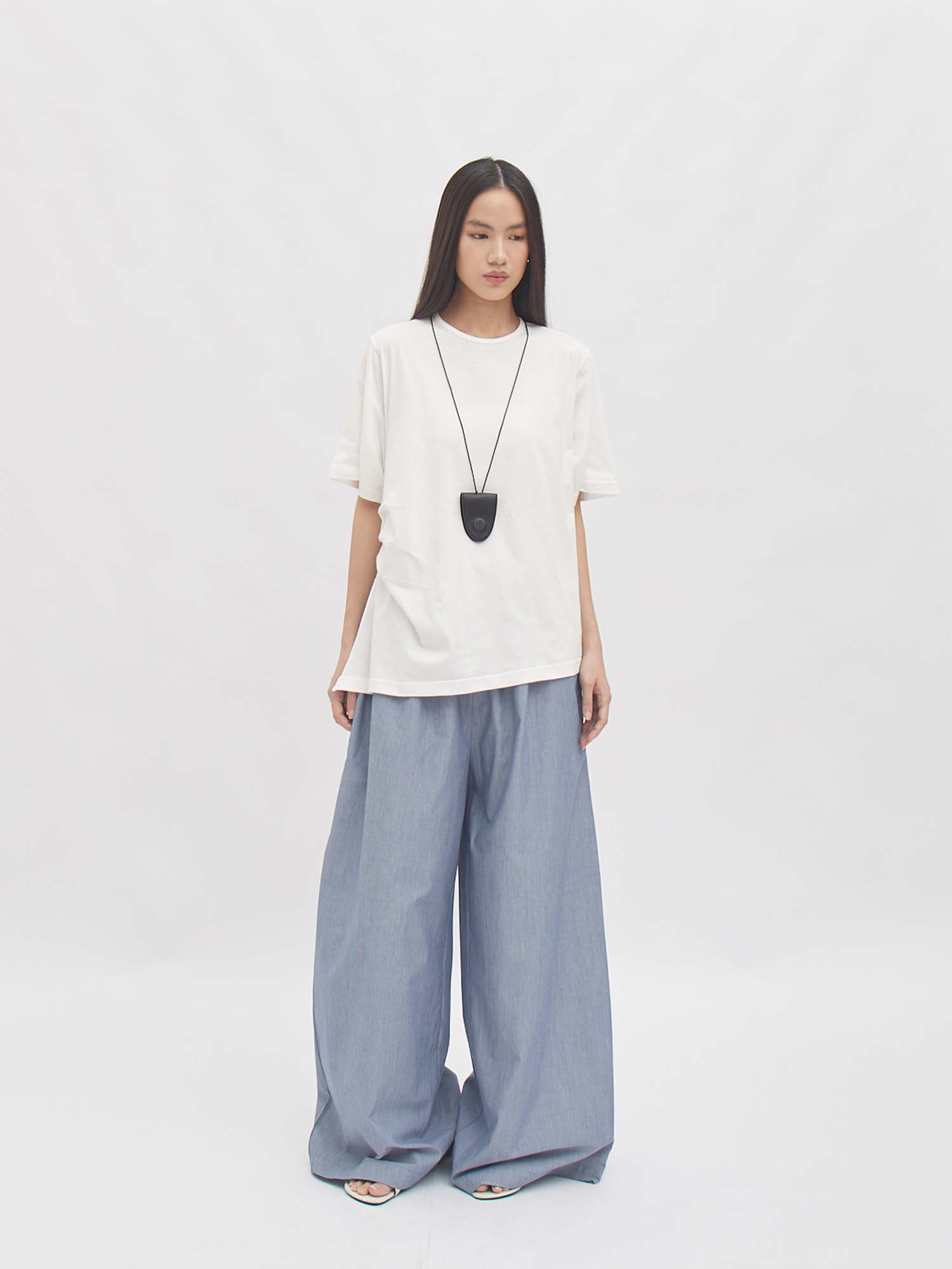 Celana wide leg dengan siluet ekstra lebar yang memberi kesan flowy dan effortless. Potongan longgar yang memberikan kenyamanan maksimal serta tampilan yang bold namun tetap minimalis. Terbuat dari material ringan dan tidak menerawang, cocok untuk gaya santai maupun formal. Tersedia dua ukuran:
