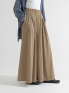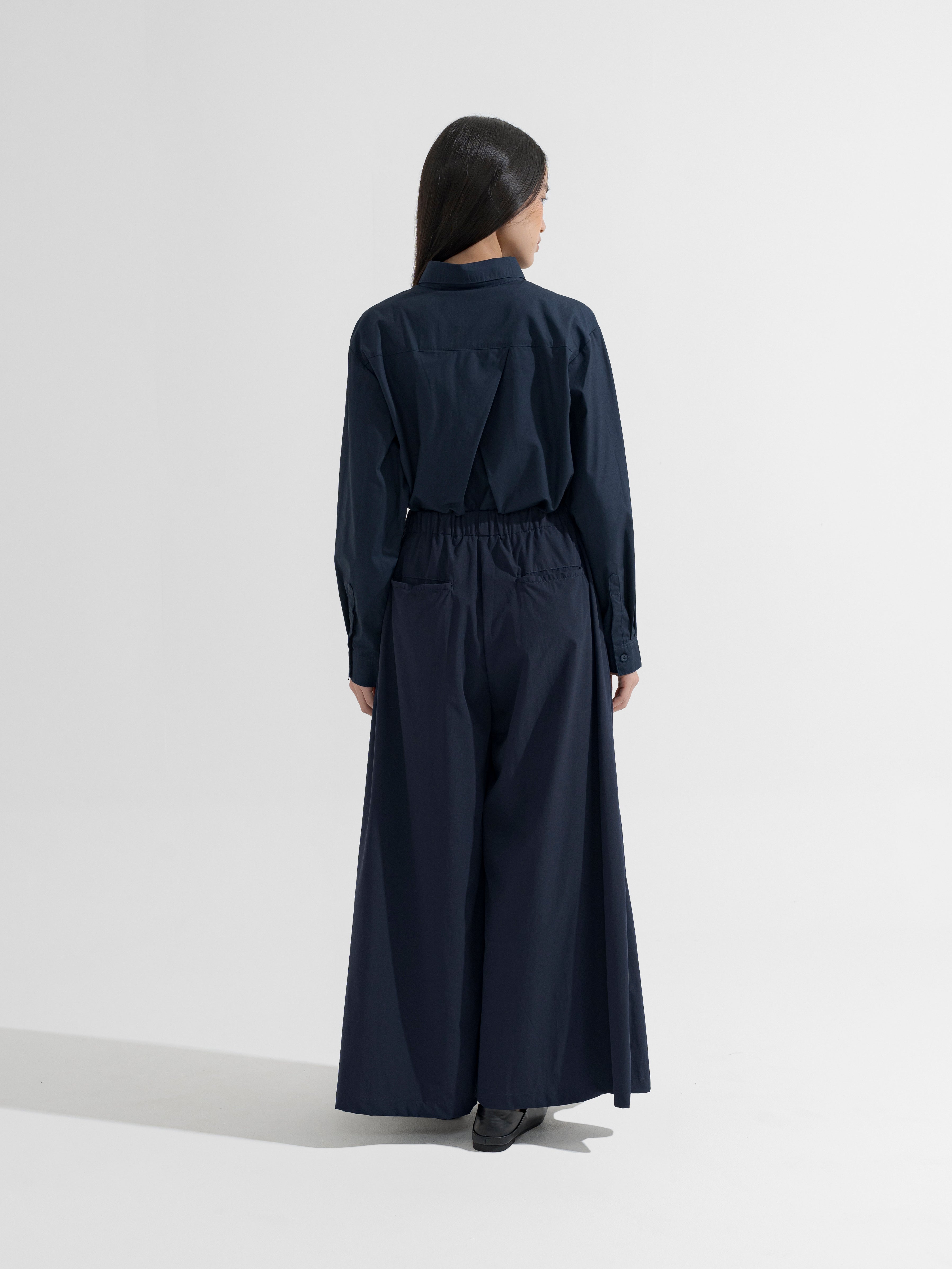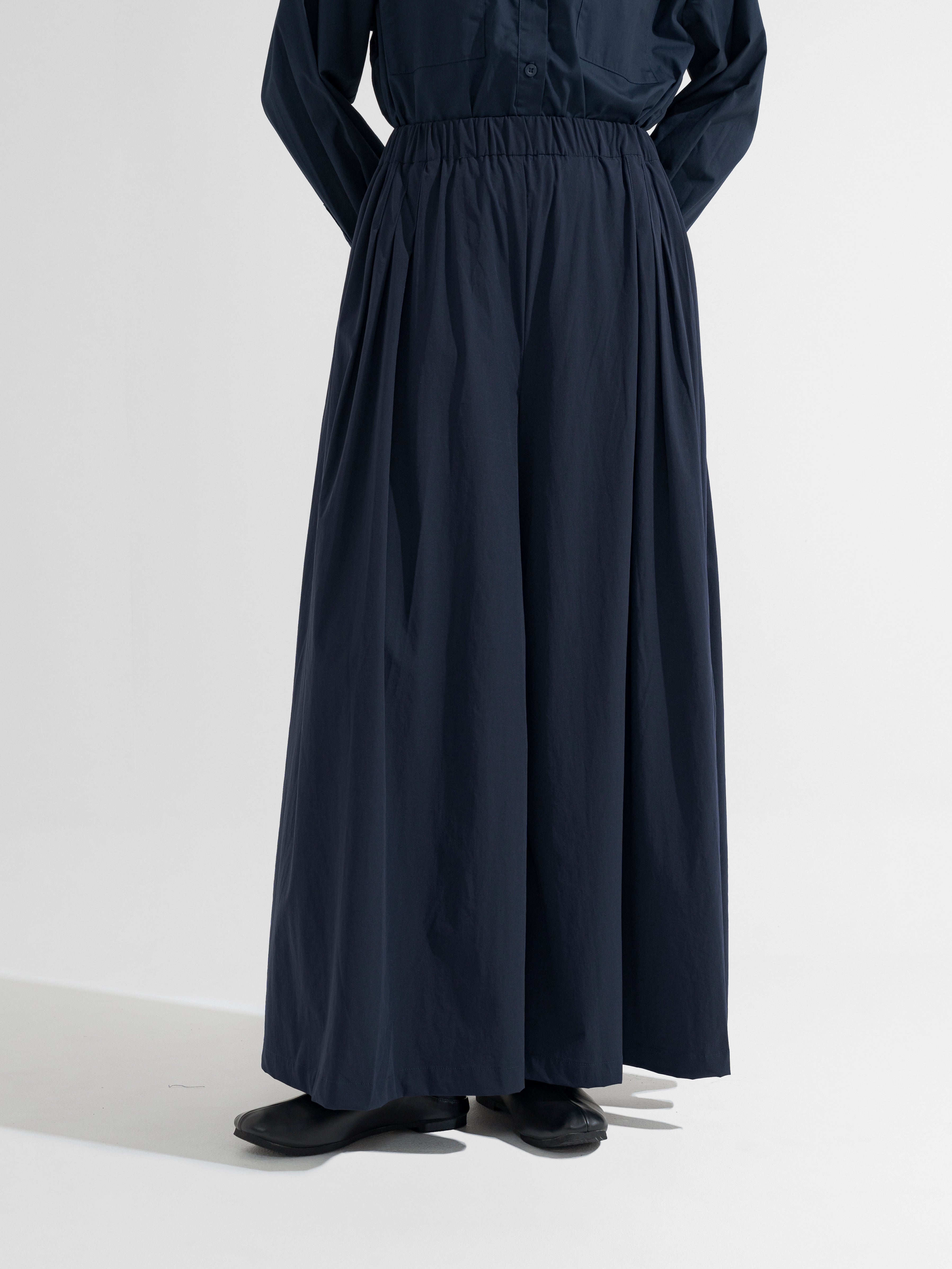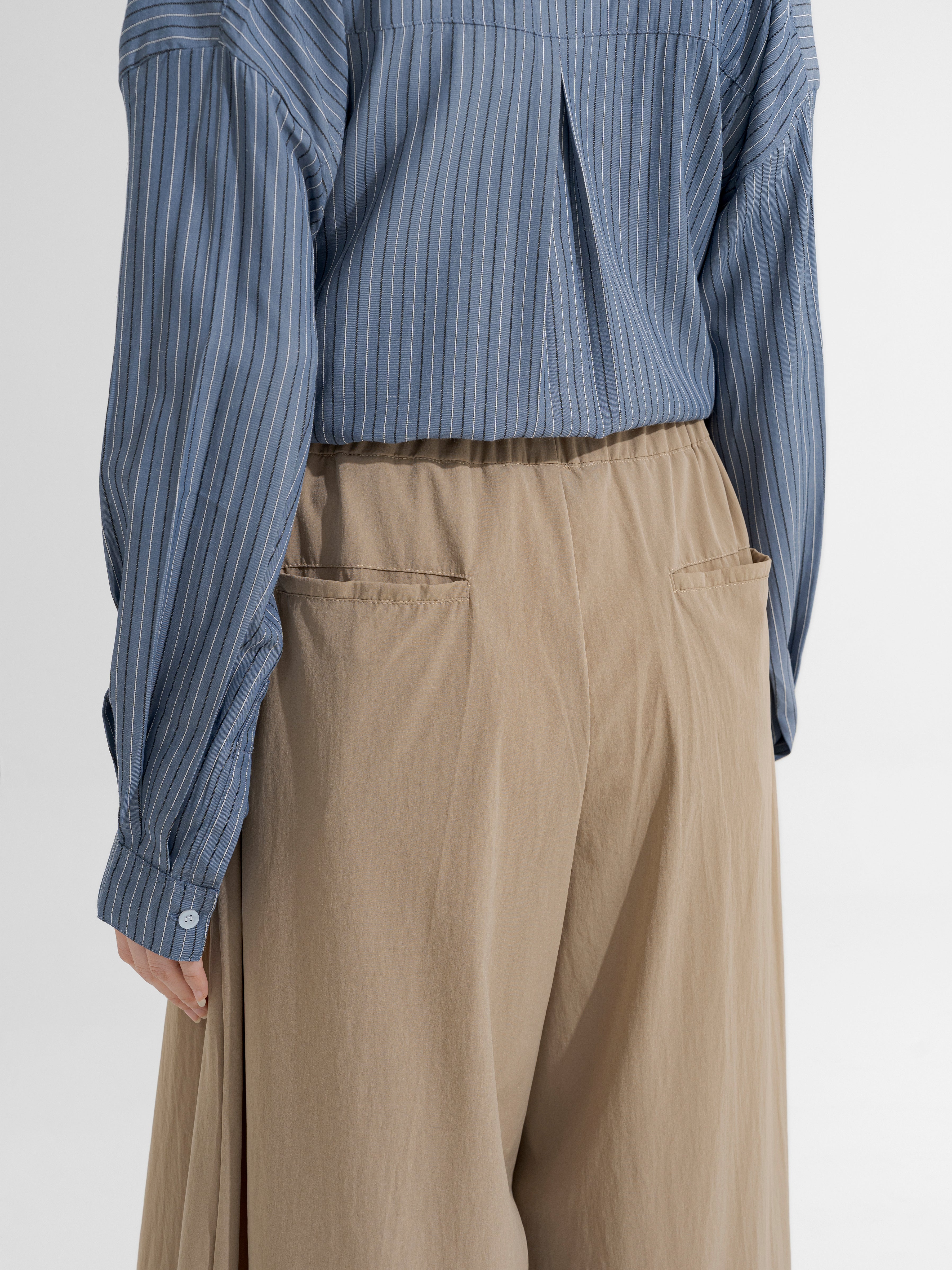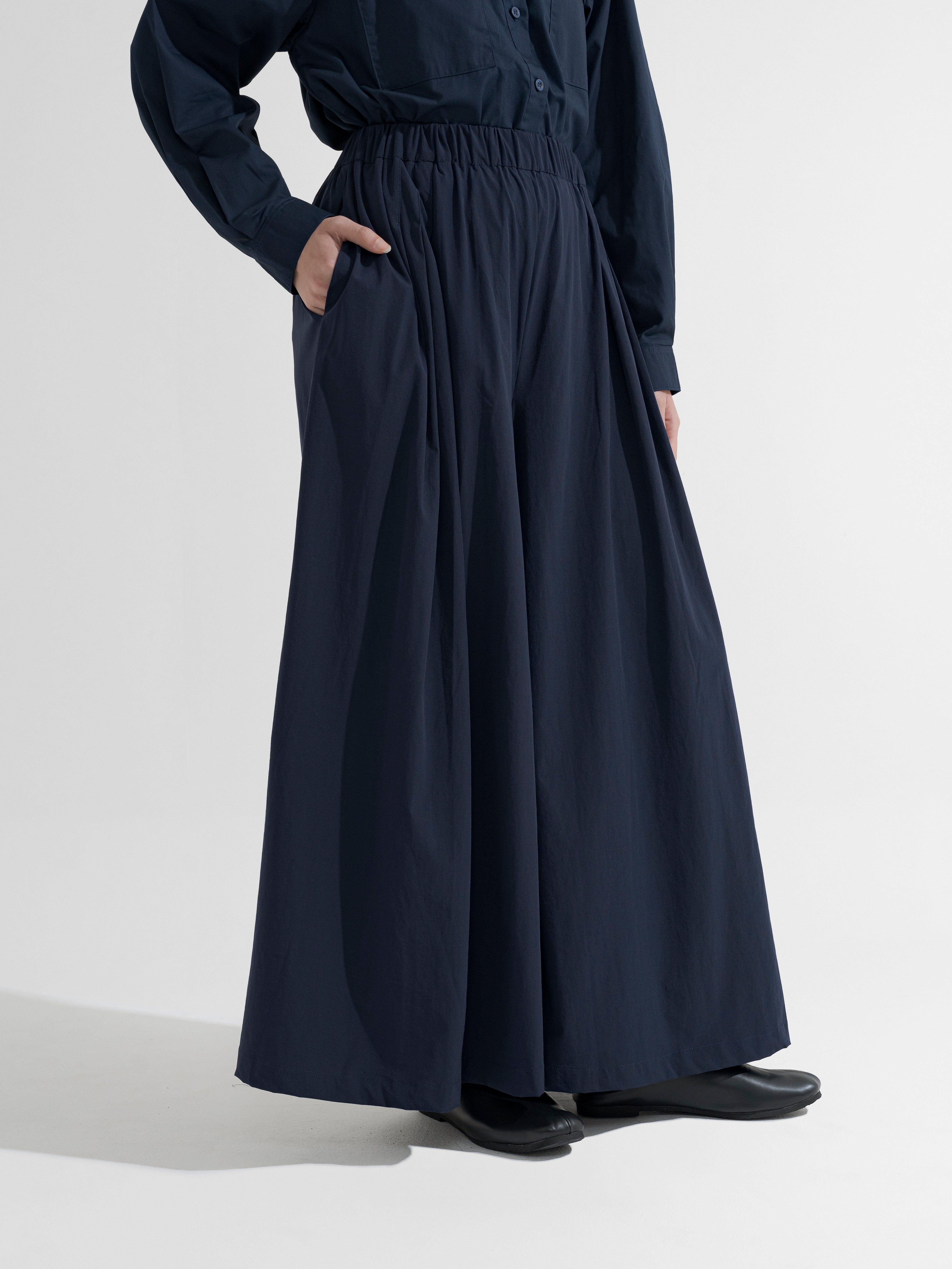 Celana panjang dengan potongan lebar dan detail lipit di bagian depan yang memberikan kesan flowy dan elegan. Dilengkapi karet di bagian pinggang untuk kenyamanan ekstra serta saku di bagian samping dan belakang yang praktis. Terbuat dari bahan nylon yang ringan dan nyaman dipakai sehari-hari.