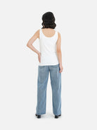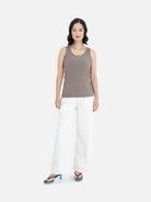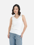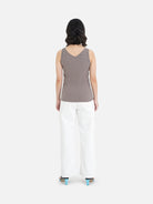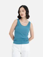 Tanktop wanita ini didesain dengan leher bulat pada bagian depan dan leher v neck pada bagian belakang. Terdapat tekstur garis-garis dan memiliki banyak warna. Bahannya ringan sehingga nyaman dipakai. Dapat dipadukan dengan kemeja dengan kancing yang terbuka. Cocok untuk dikenakan langsung atau dengan luaran.