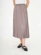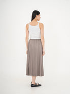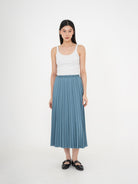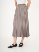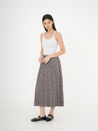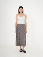 Rok panjang semata kaki dengan lipit yang rapi untuk kesan elegan. Desainnya yang fleksible juga menciptakan kesan feminin. Bagian pinggang terbuat dari karet sehingga nyaman dipakai. Cocok untuk dipadukan dengan kemeja maupun atasan kasual.