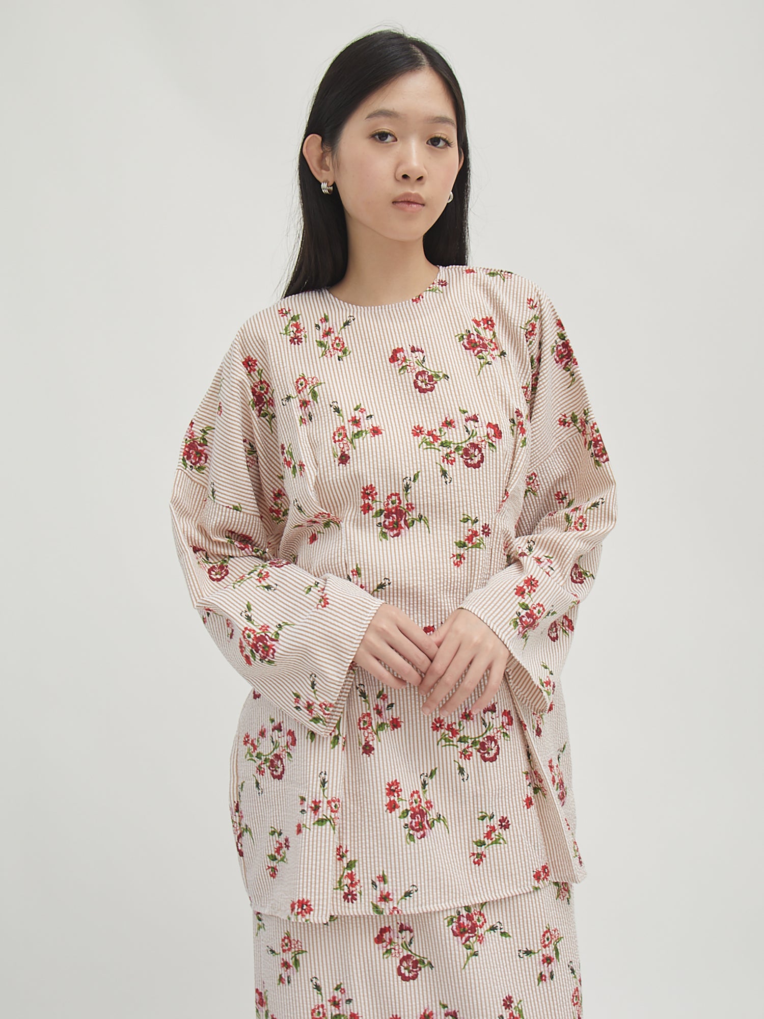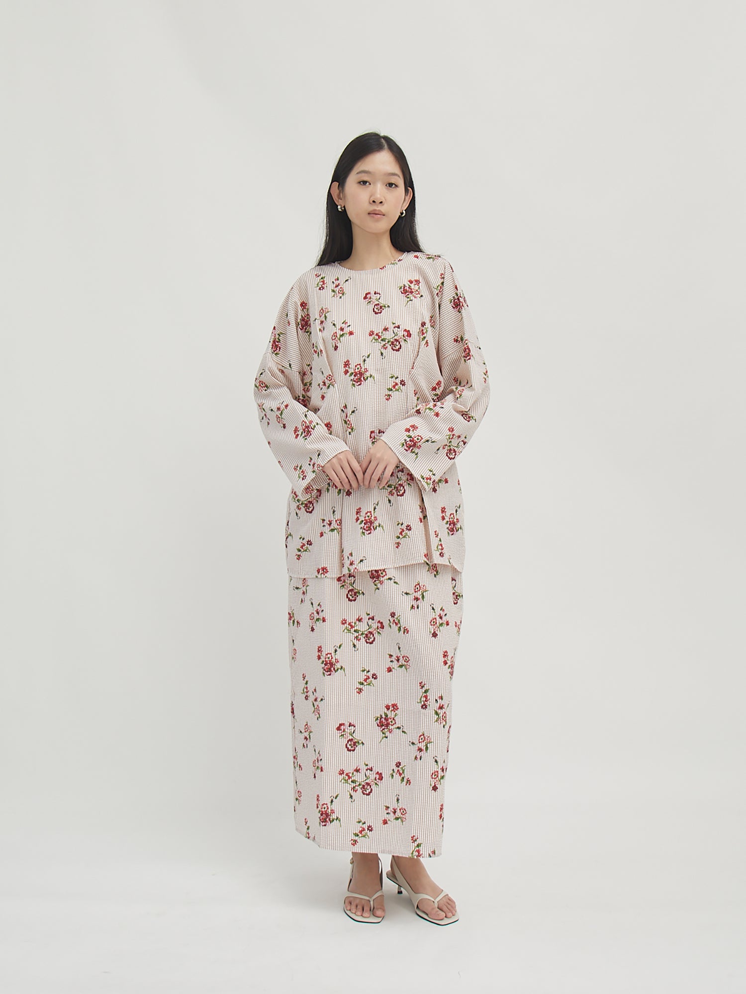 Set atasan dan rok dengan potongan longgar yang nyaman untuk aktivitas harian. Desainnya simpel dan mudah dipadukan, cocok dikenakan sebagai satu set atau dipisah untuk berbagai gaya. Bahannya ringan dan breathable, memberikan kenyamanan sepanjang hari, baik untuk kegiatan santai maupun semi-formal.