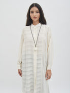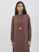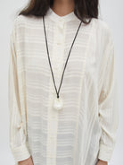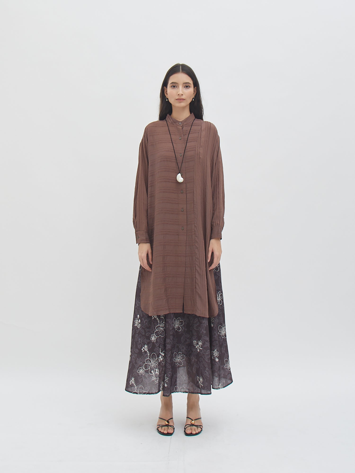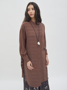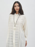 Tunic dengan tampilan ringan dan jatuh, memberikan kesan anggun saat dikenakan. Desainnya nyaman dipakai untuk berbagai aktivitas, baik untuk tampilan santai maupun semi-formal. Potongannya longgar sehingga mudah dipadukan dengan celana atau rok favorit, cocok untuk layering maupun dipakai sendiri.