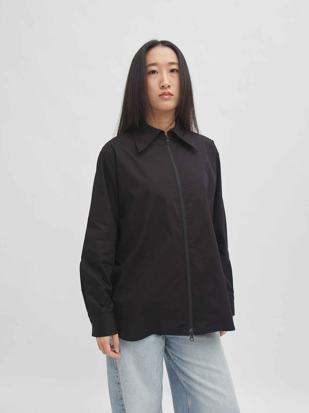 Kemeja dengan desain simpel dan versatile ini hadir dengan detail resleting depan yang bisa dikenakan dalam dua cara: sebagai kemeja tertutup maupun outer ringan. Potongan loose dan bahannya yang ringan membuatnya nyaman dipakai seharian, cocok dipadukan dengan jeans, rok, atau bahkan dress sebagai pelapis. Tersedia dalam warna hitam yang timeless, kemeja ini bisa jadi pilihan andalan untuk tampilan kasual maupun semi-formal.