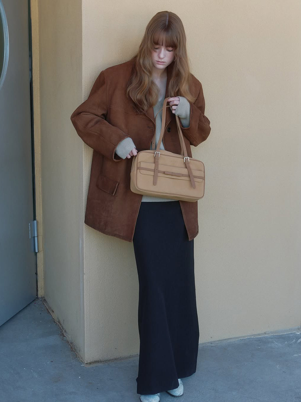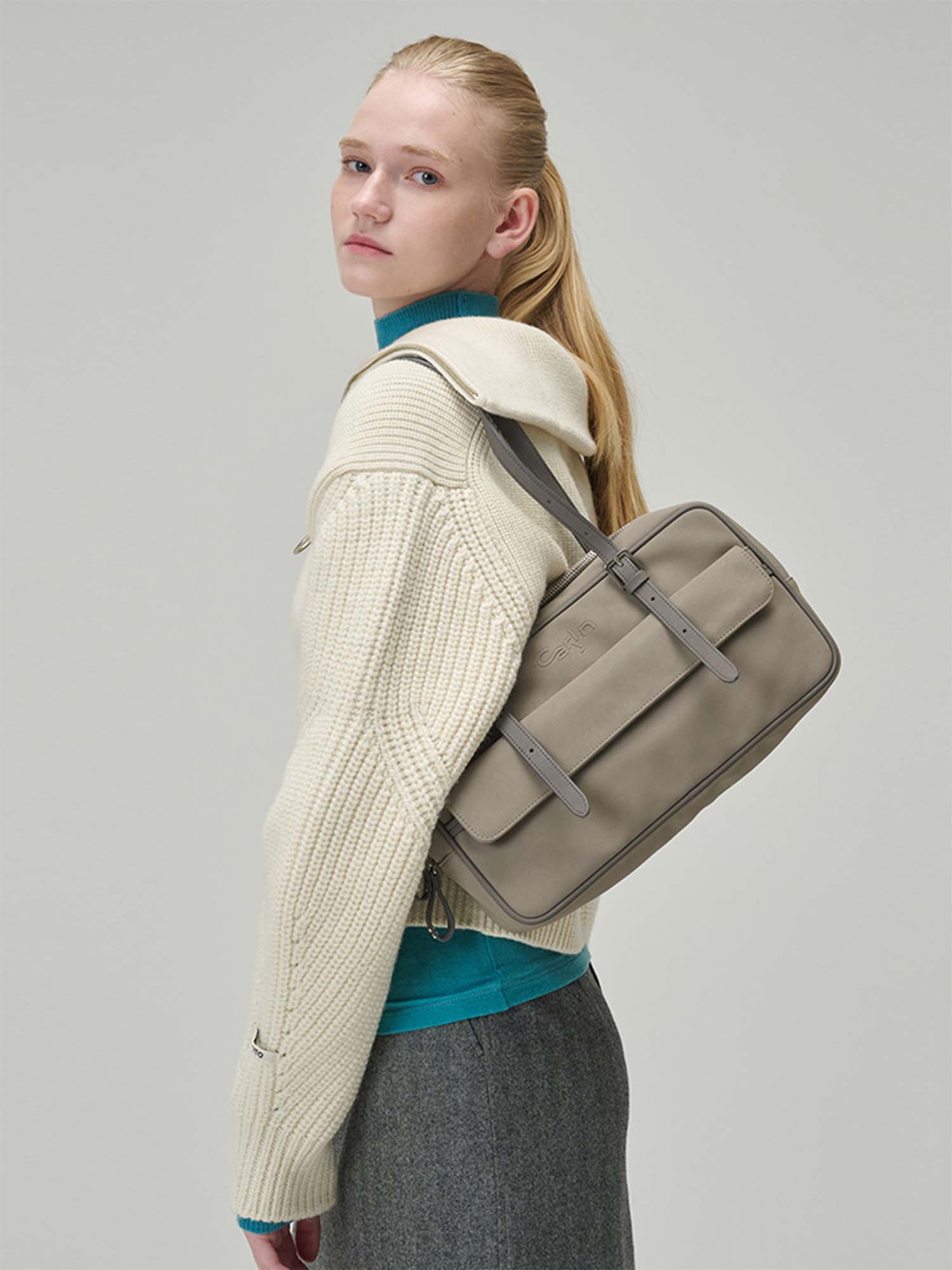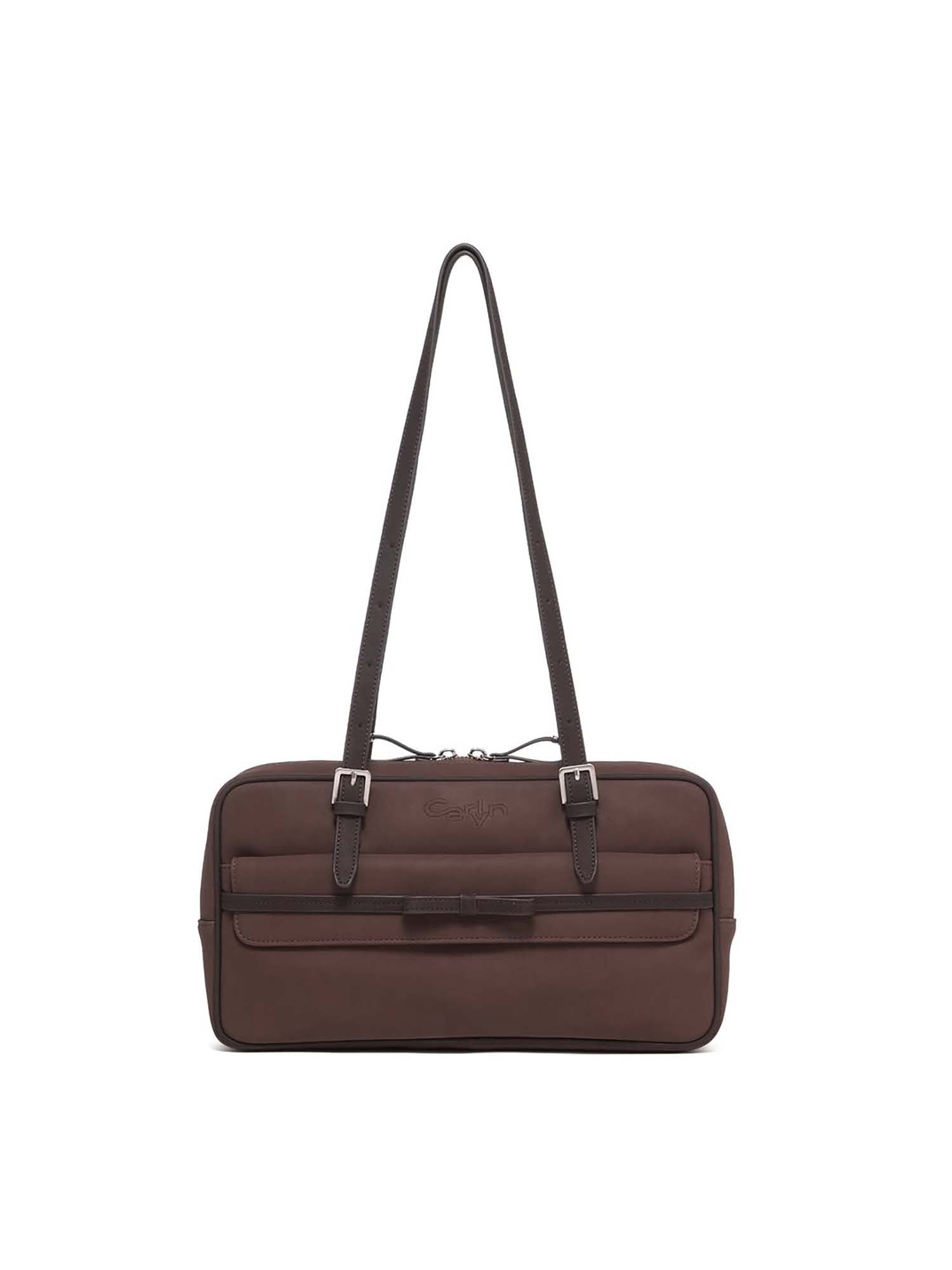 The Rizzle Suede bag features a smooth, solid suede-like texture that brings warmth and elegance to your daily style. Designed with a three-dimensional CARLYN logo embossed at the center, it adds a distinctive touch of identity. The front pocket is accented with a ribbon detail, which can be styled for a charming or neat look depending on how it's arranged.
