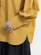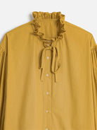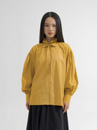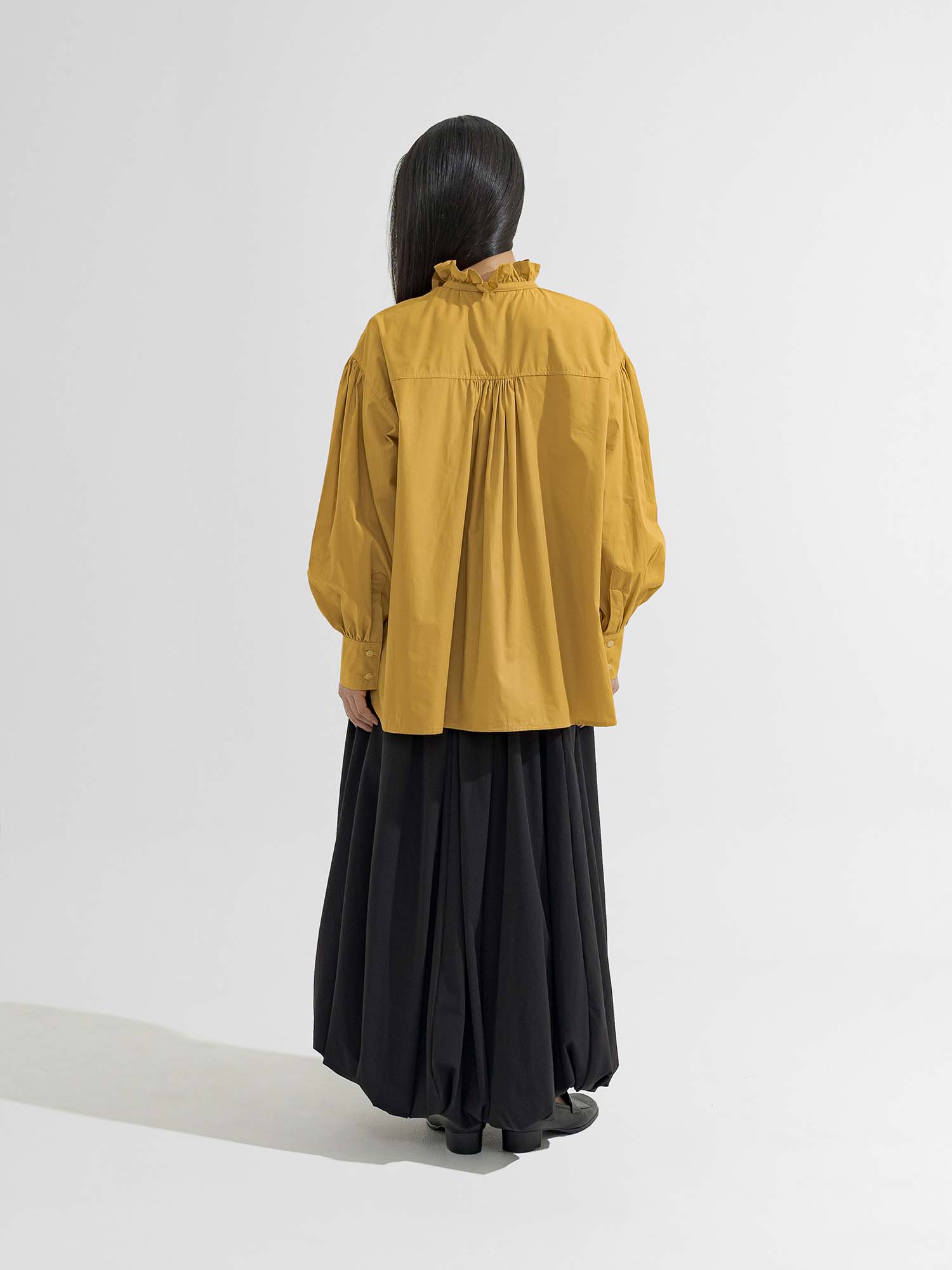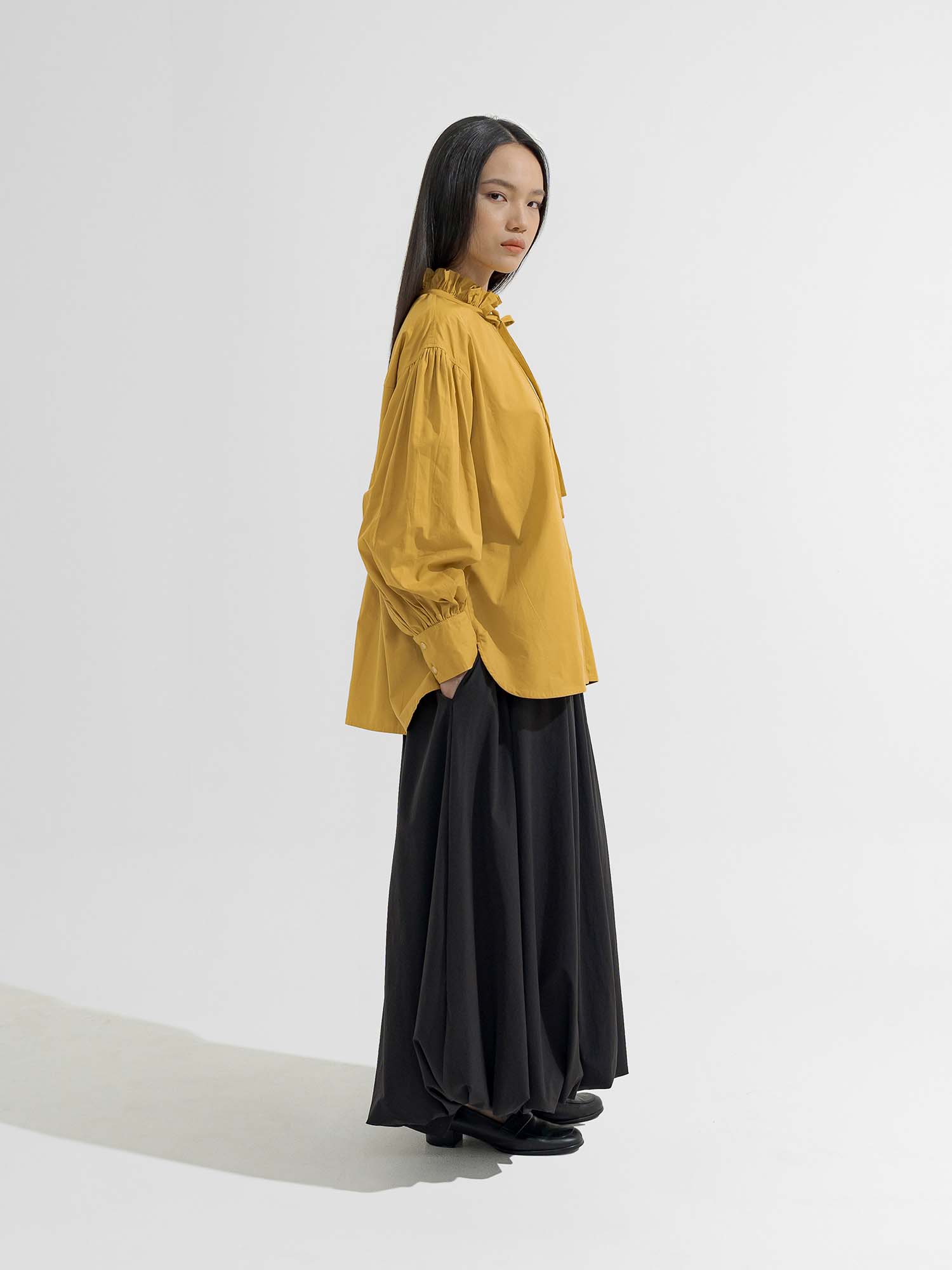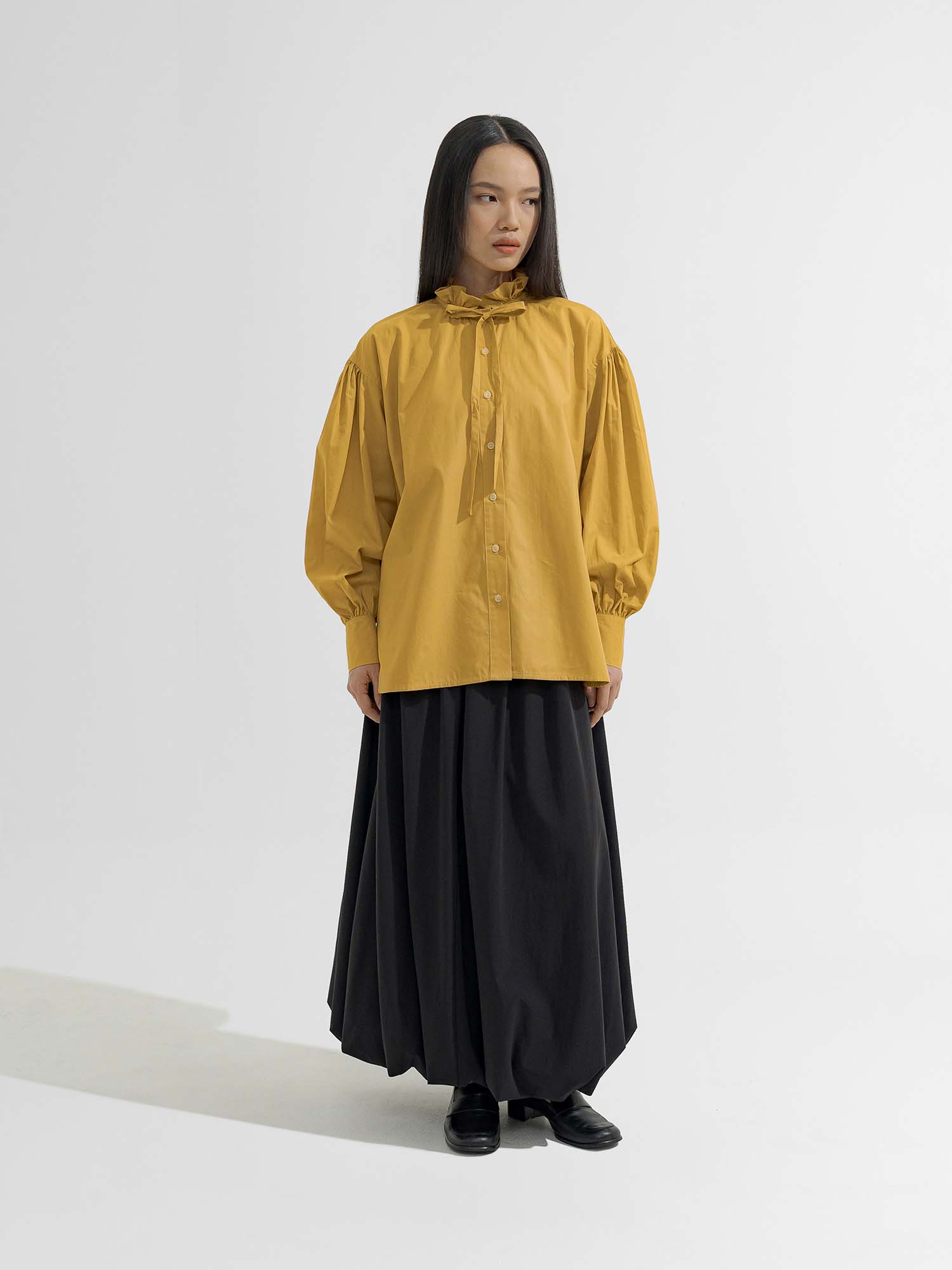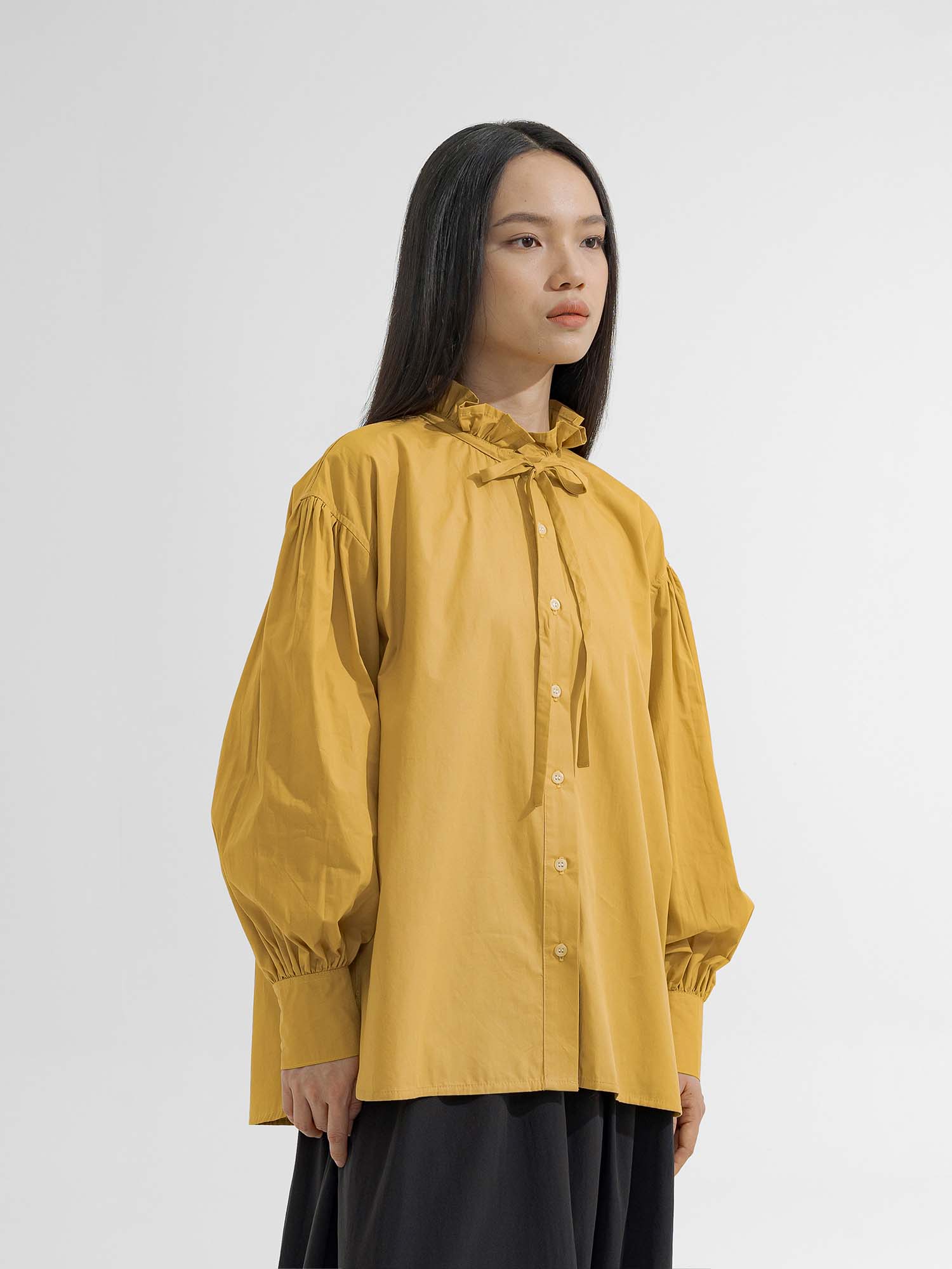 Blouse berbahan poplin cotton dengan desain anggun dan sentuhan feminin pada bagian kerah ruffle berpita. Potongan longgar dengan detail lengan puff dan manset kancing menambah kesan elegan namun tetap nyaman dipakai sehari-hari. Cocok dipadukan dengan rok maupun celana untuk tampilan kasual chic hingga semi formal.
